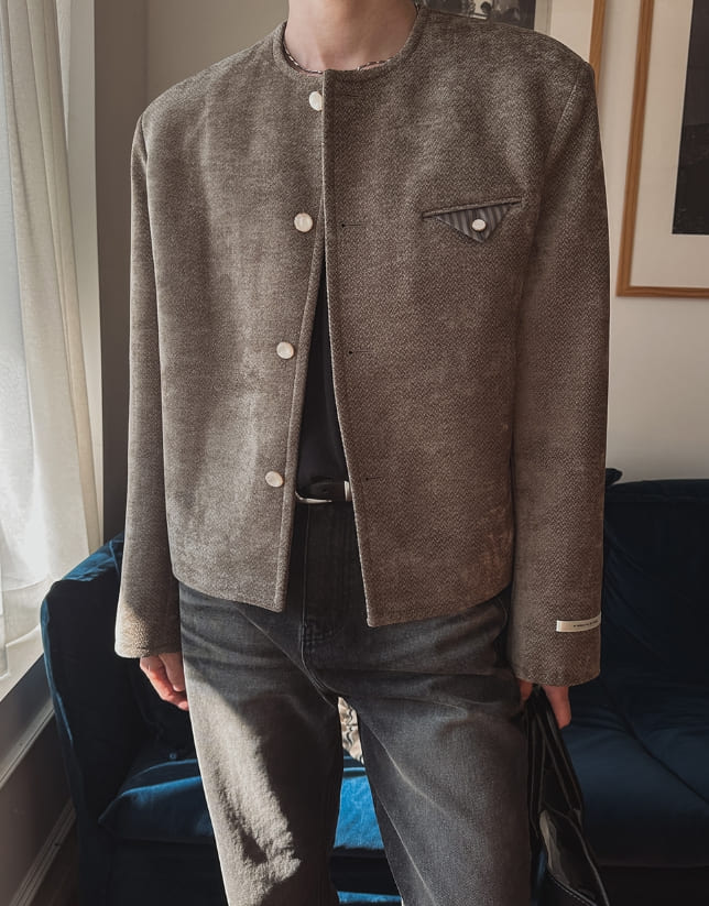Ekkeullo Collar Less Tweed Blazer