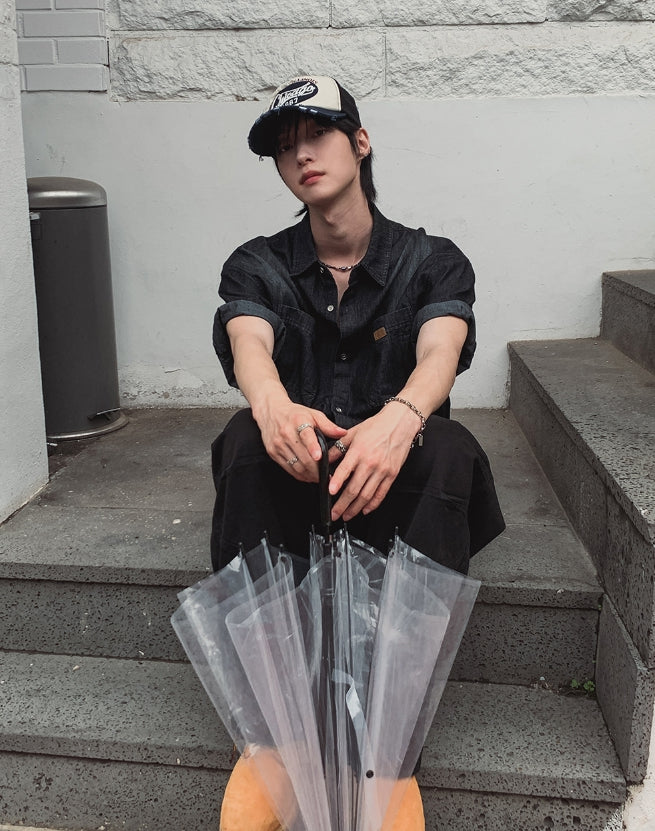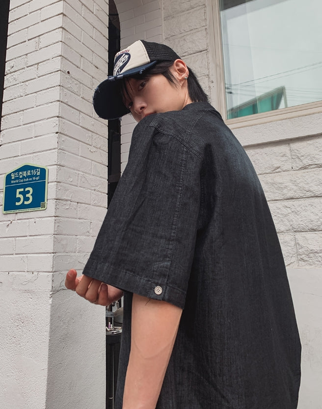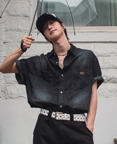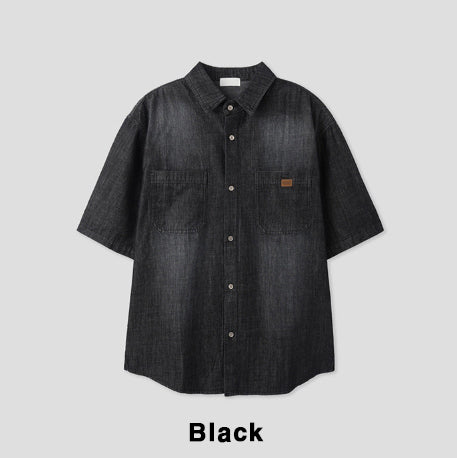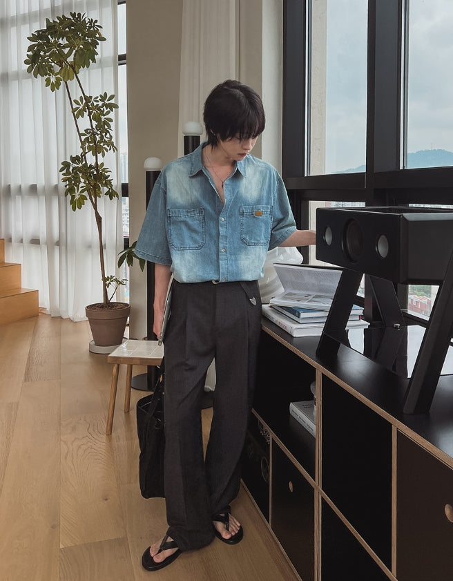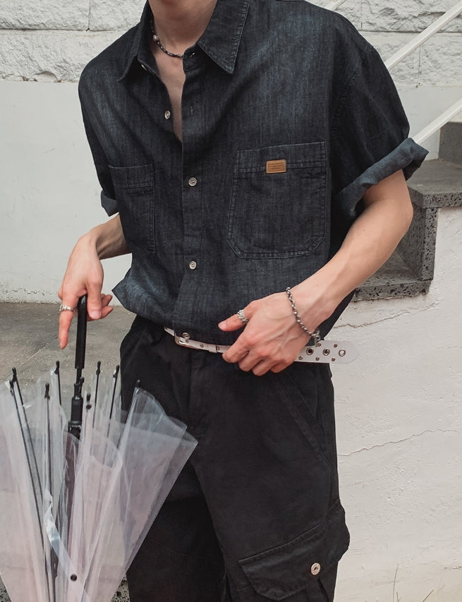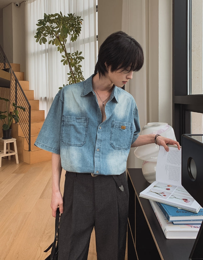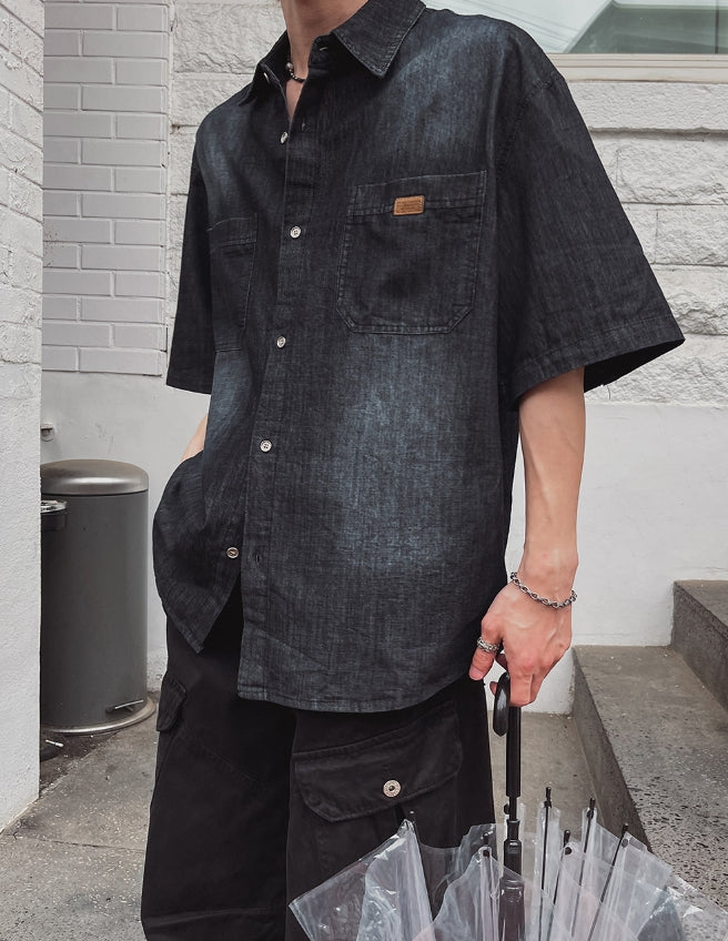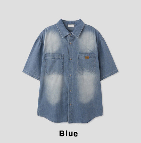 フルービンテージウォッシュ加工デニム半袖シャツ