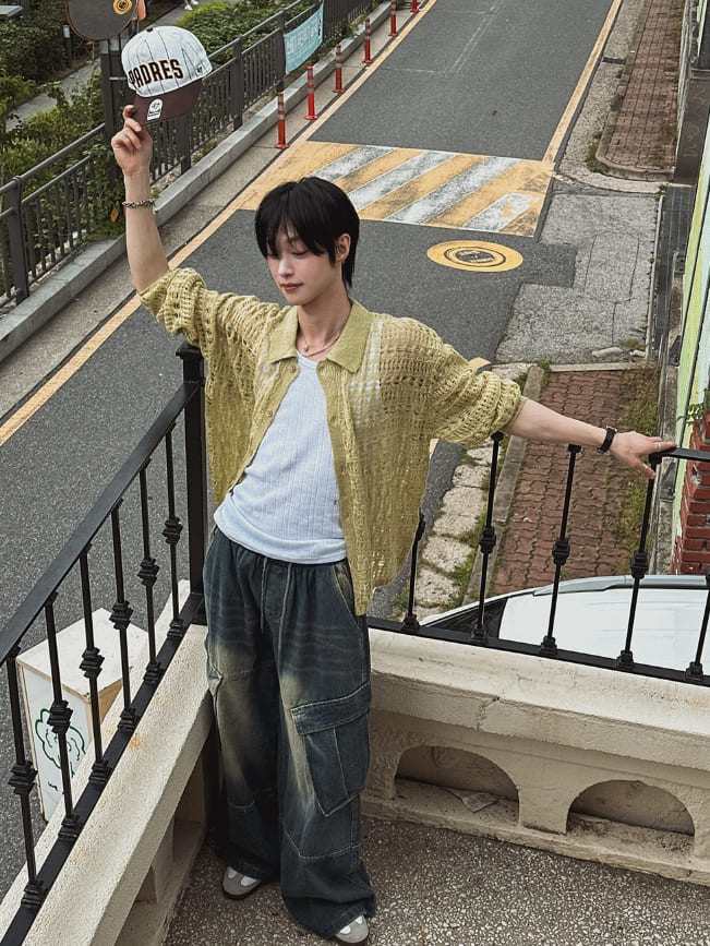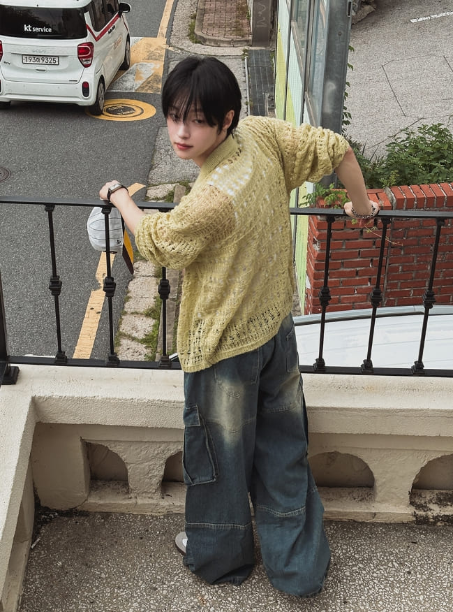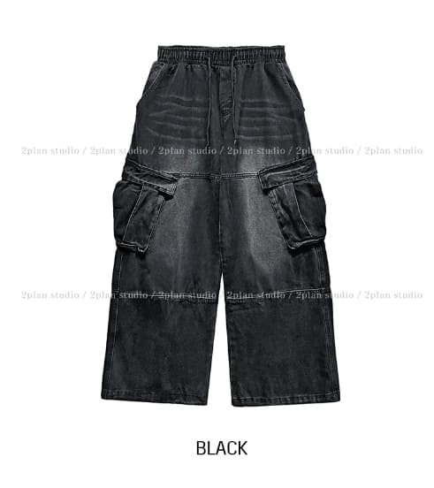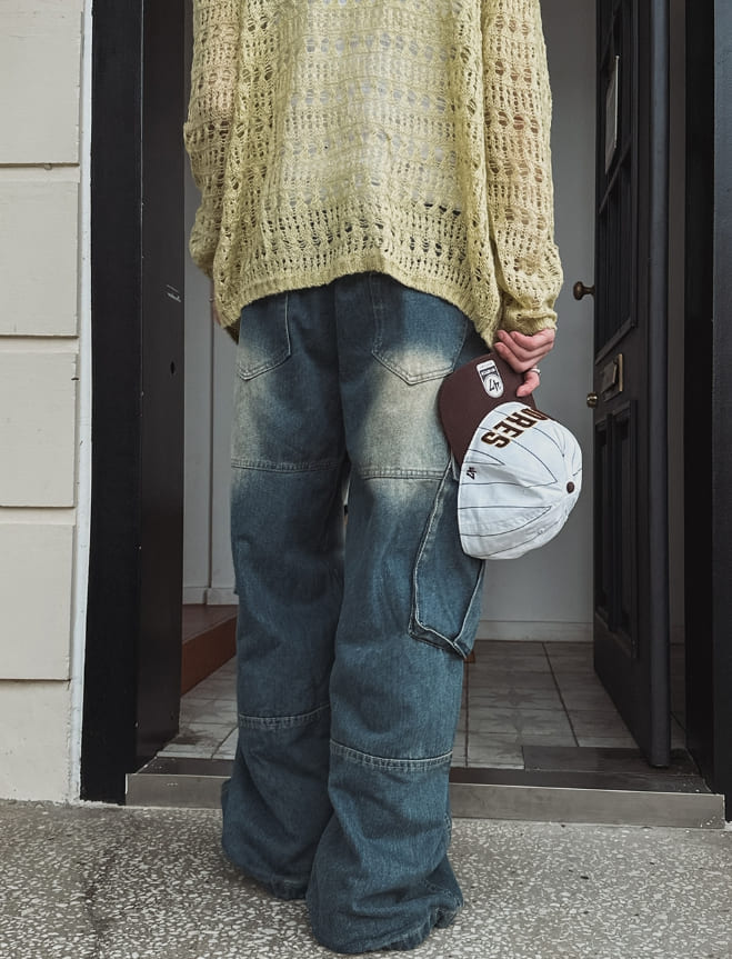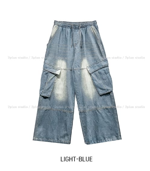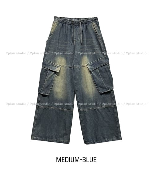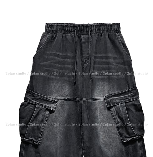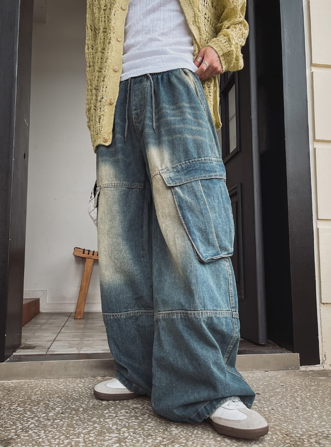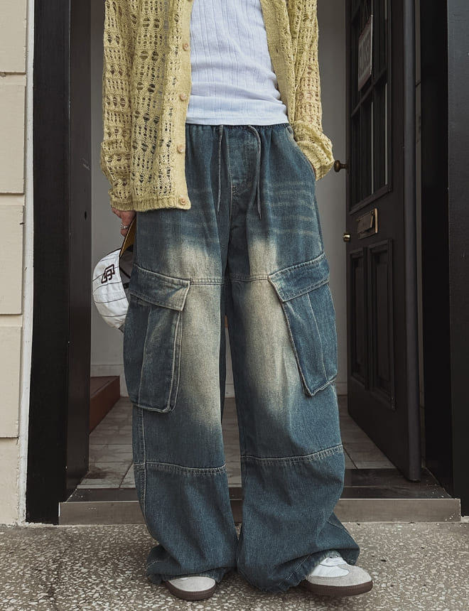 ハードビンテージウォッシュ加工カーゴデニムパンツ