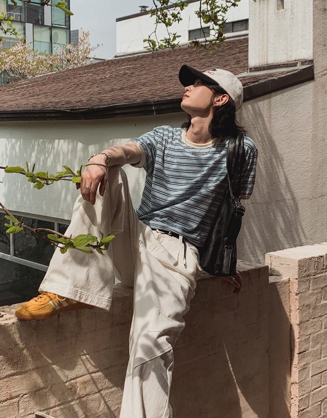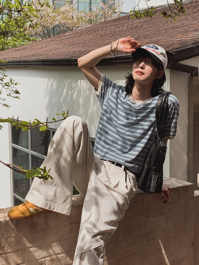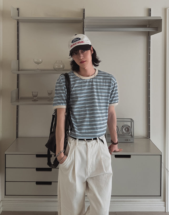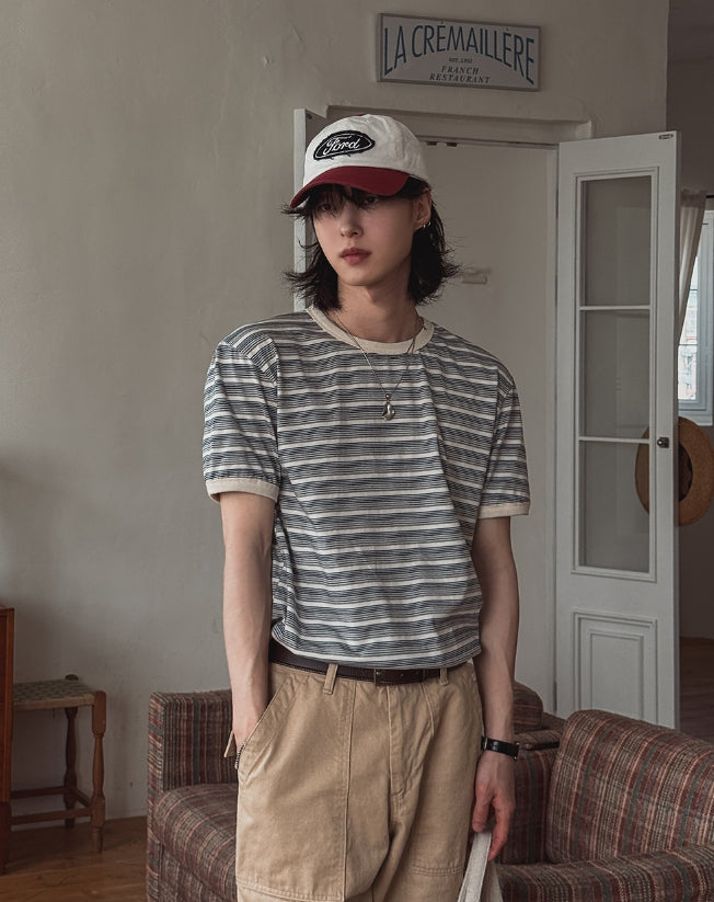 Kelly Stripe Color Matching Short Sleeve T-shirt