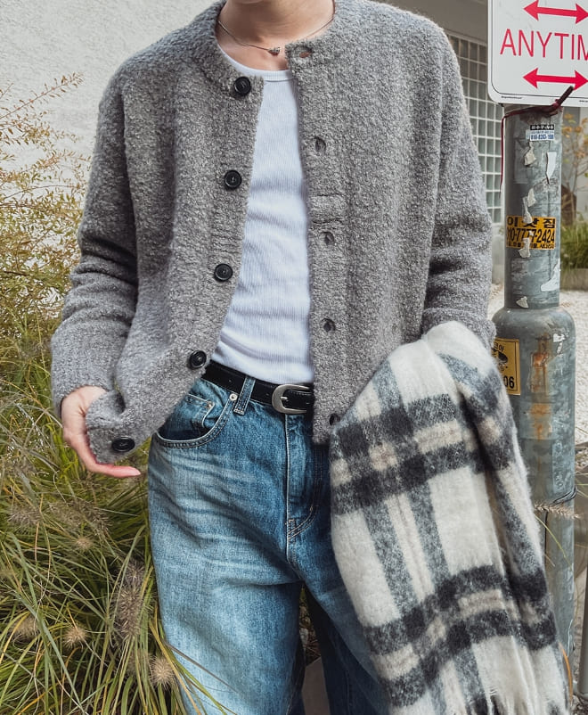 [LANARCH] Boucle Round Neck Cardiga