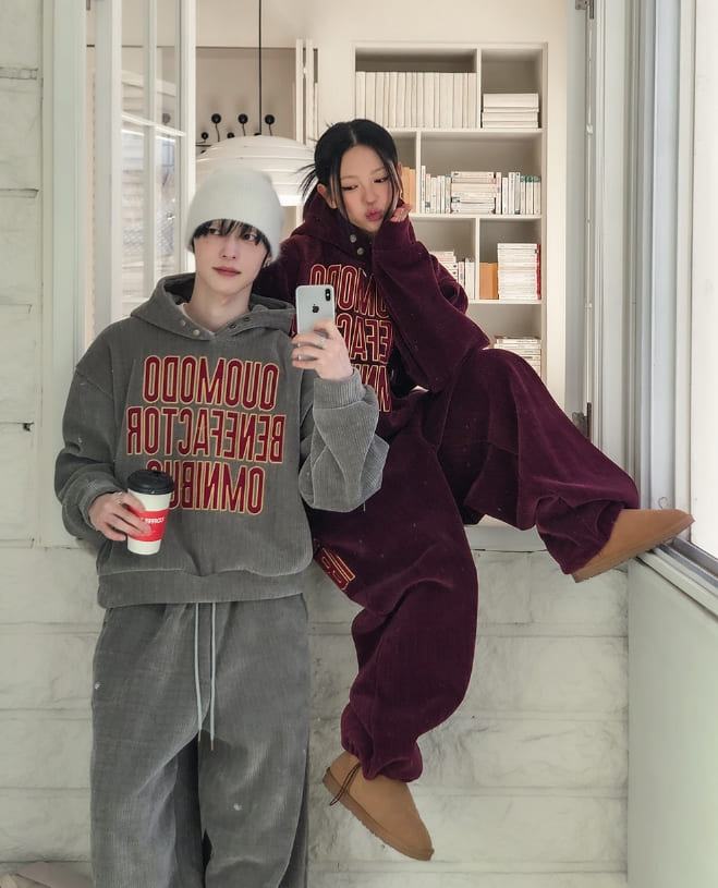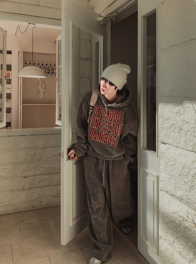 [Mink Brushed] Lotri Velvet Corduroy Crop Hoodie