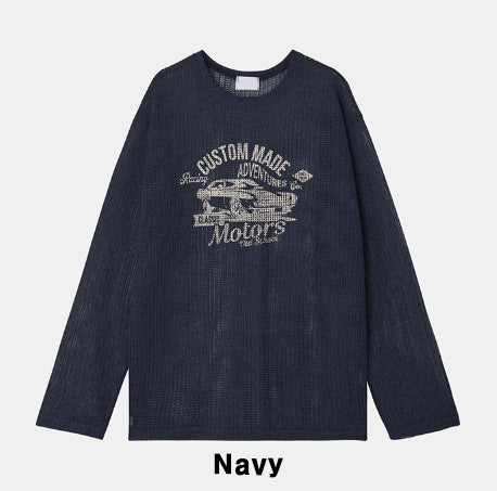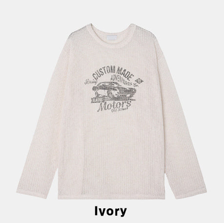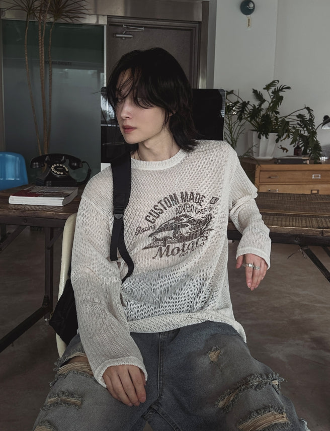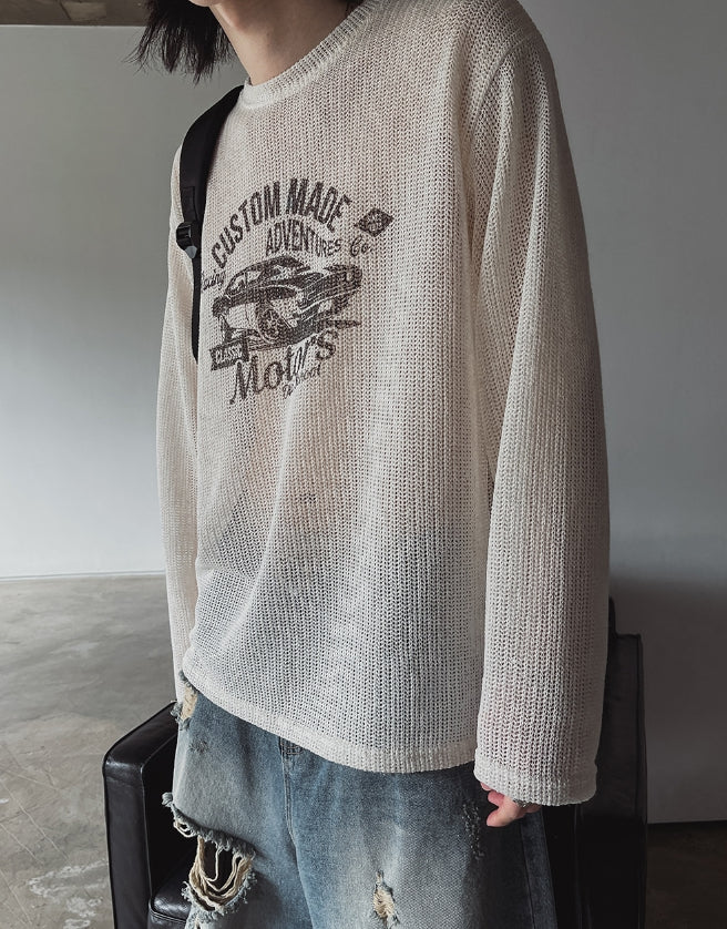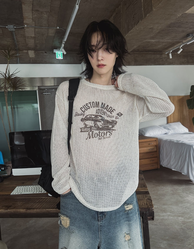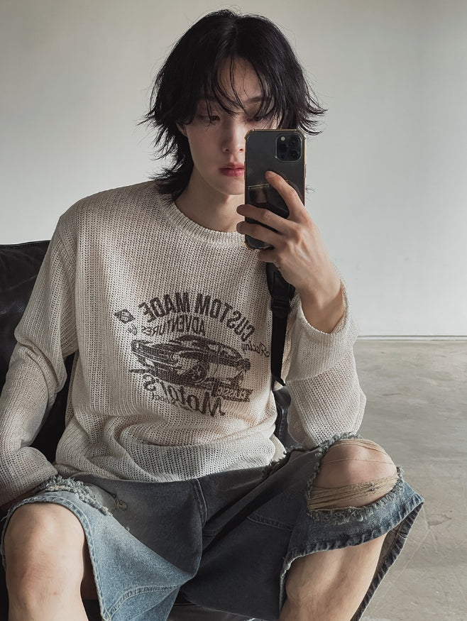 Racing graphic summer see-through knitwear