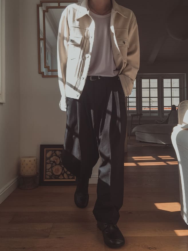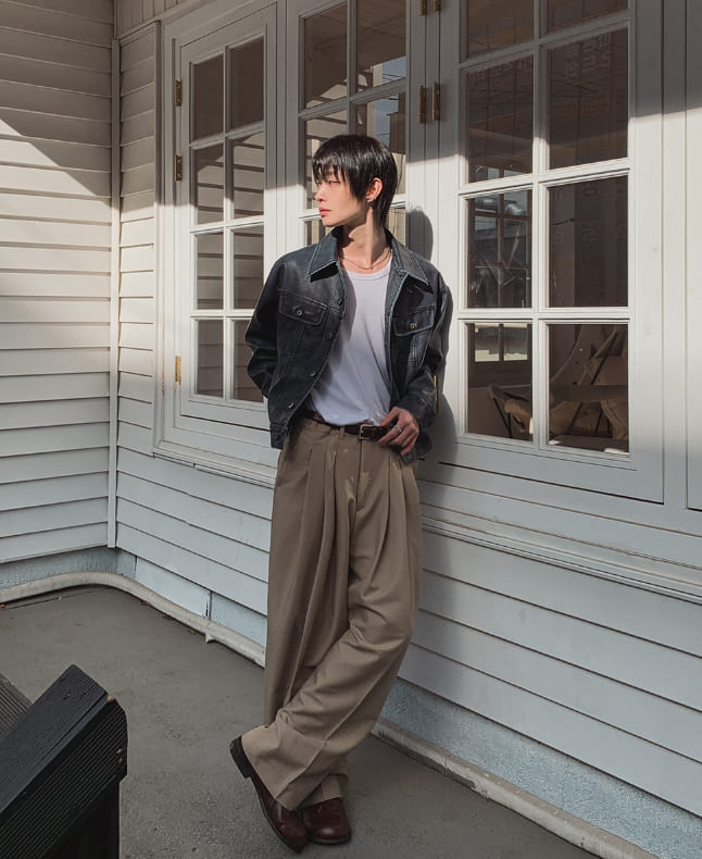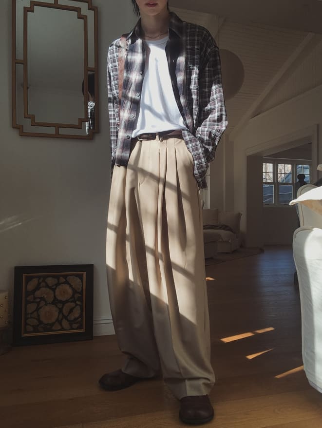 スプリングピンタックワイドスラックス