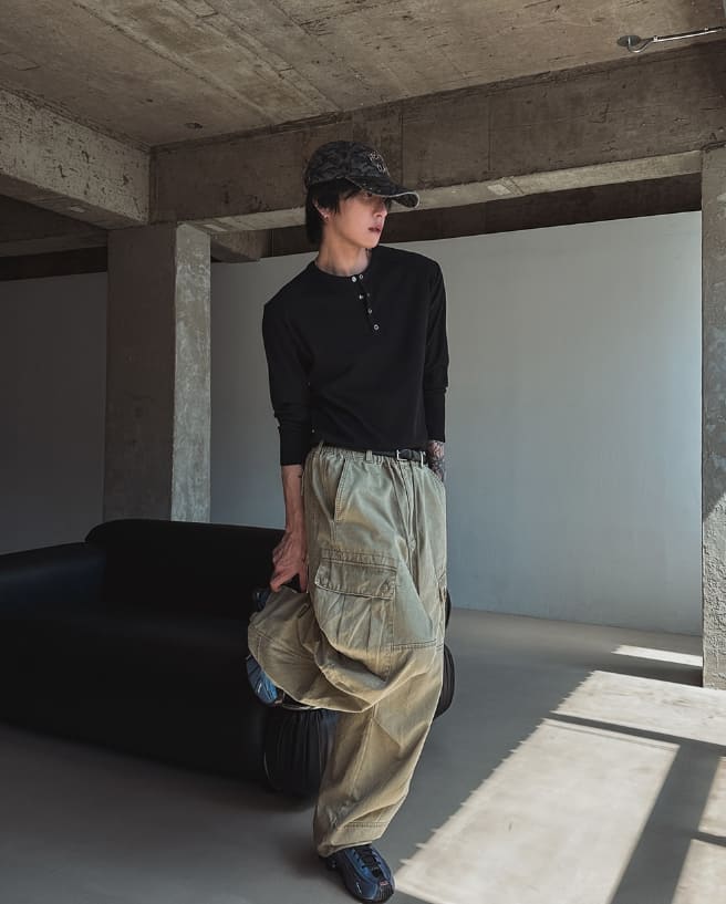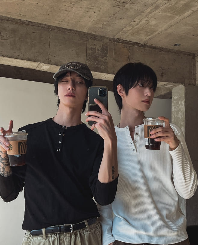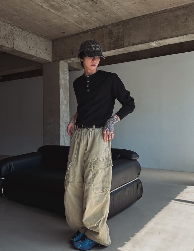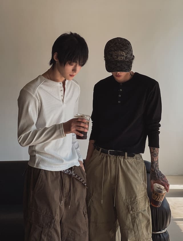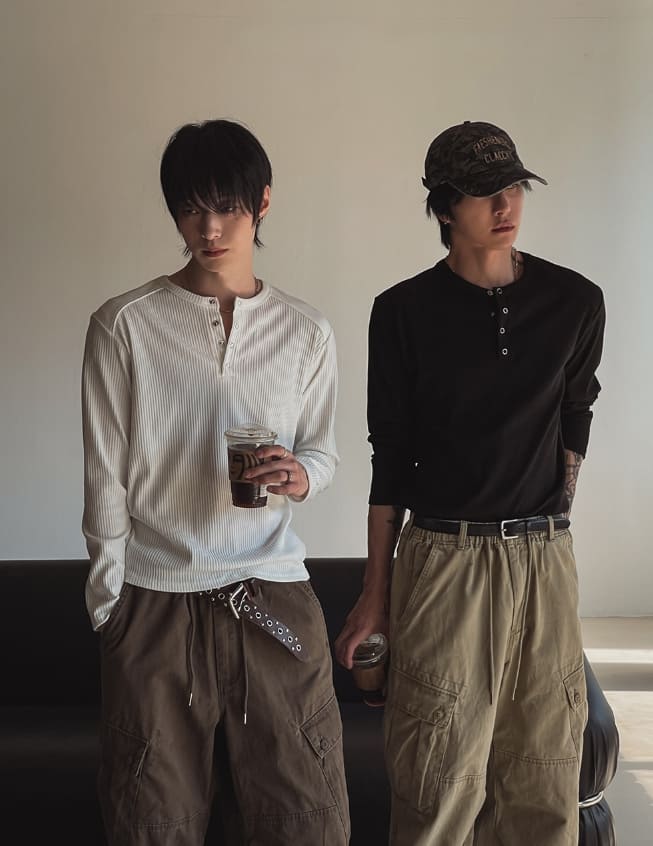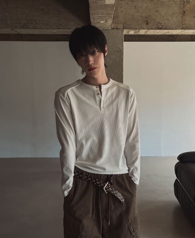 スイングダブルショルダーリブマッスルフィットヘンリーネック