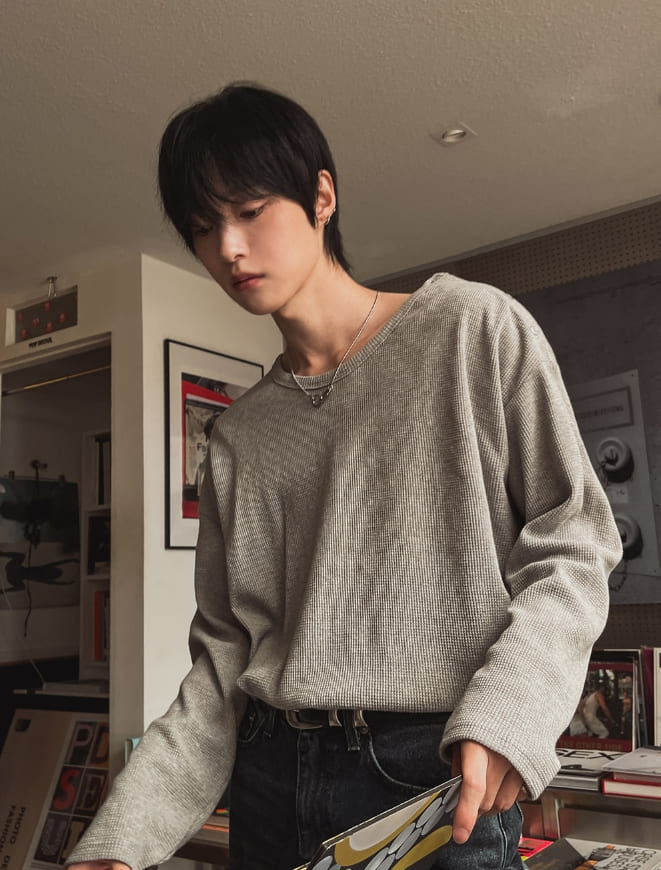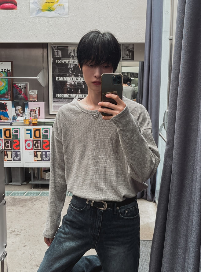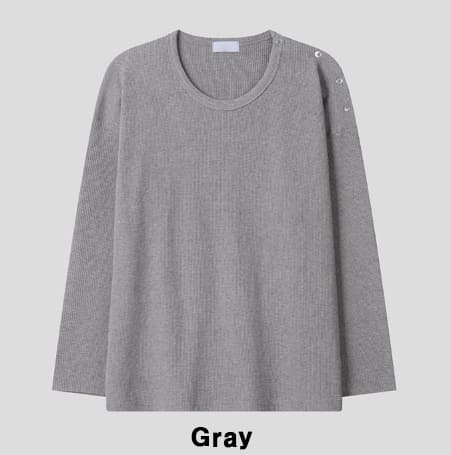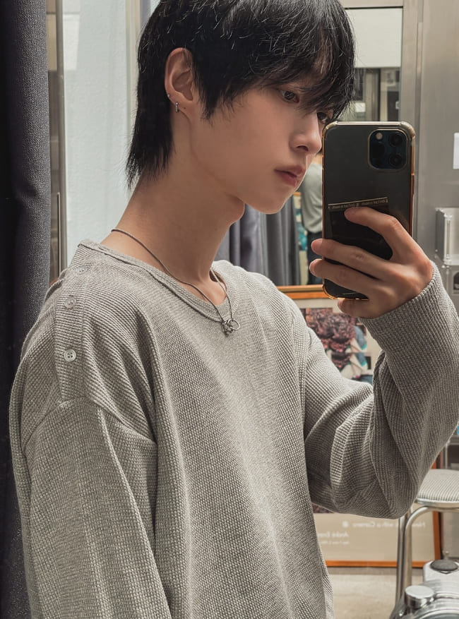 ワッフルボタンワイド長袖Tシャツ