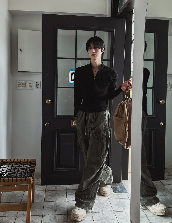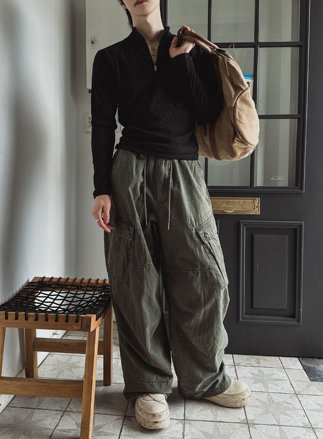 ウィリーウォッシュ加工ビンテージディアゴナルカーゴパンツ