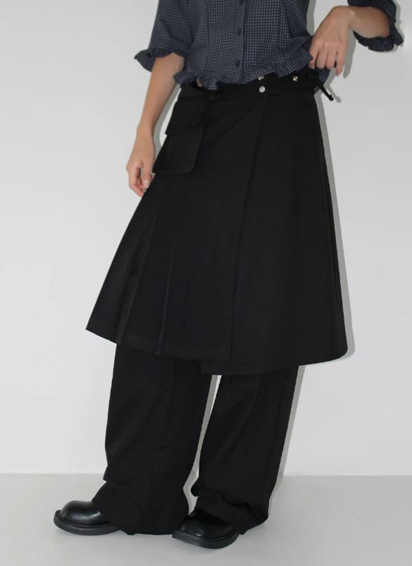 [3-PIECE] UTILITY LAYERED SKIRT&PANTS