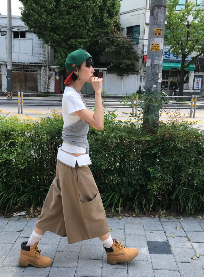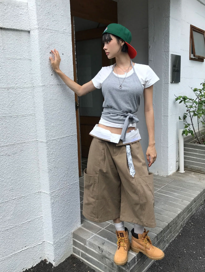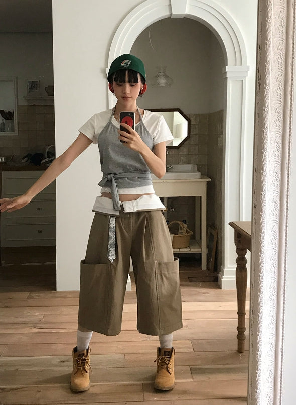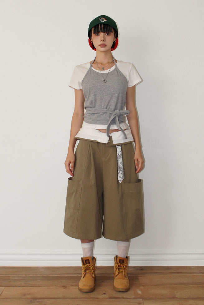 [ベルトセット]フォールドオーバーバミューダパンツ