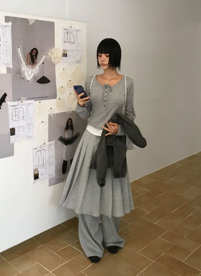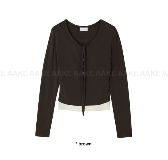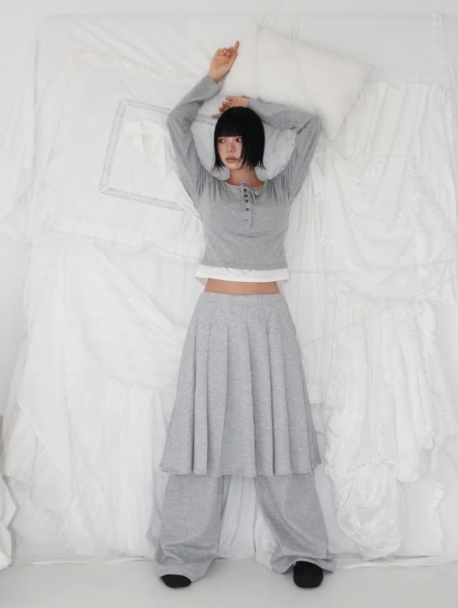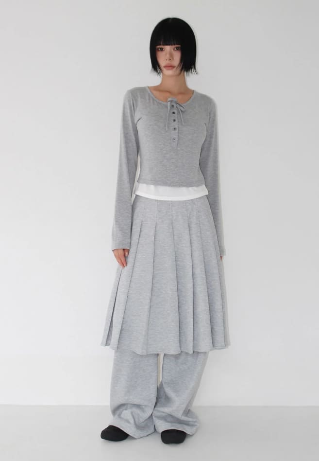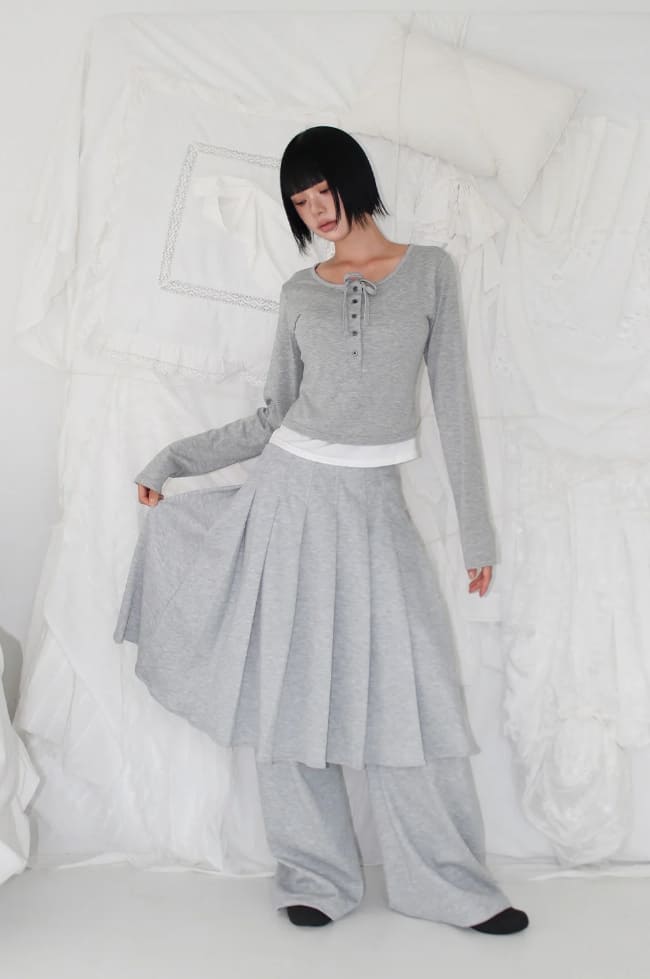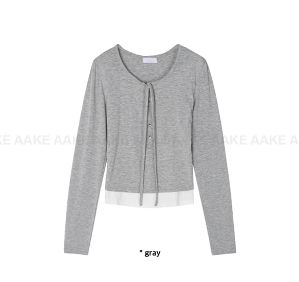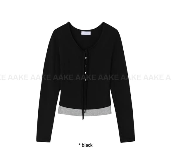 (Brushed Lining) BUTTON STRAP LAYERED TEE
