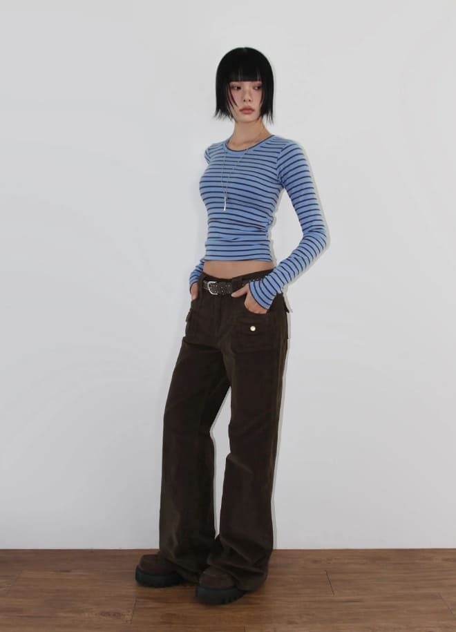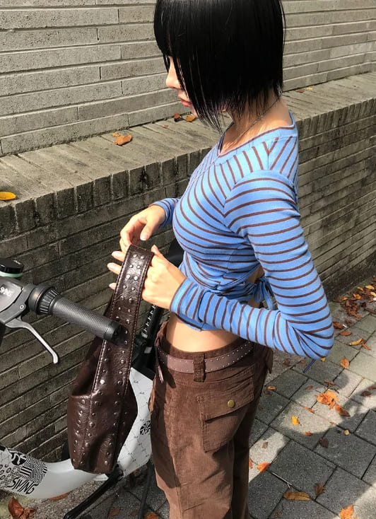(Brushed) TIE-BACK STRIPE LONGSLEEVE