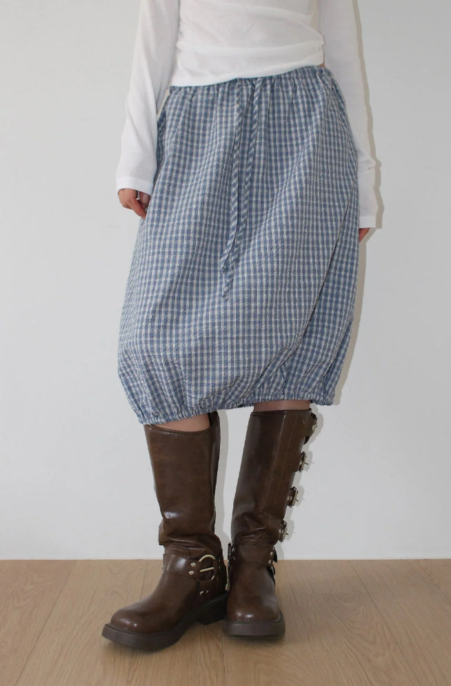 CHECK BALLOON MIDI SKIRT