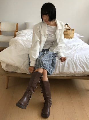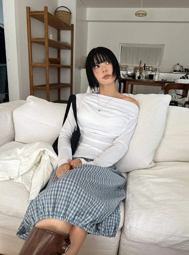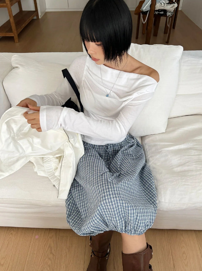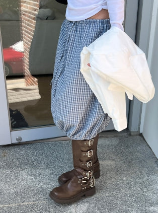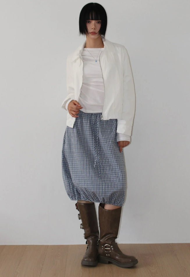 チェックバルーンミディスカート