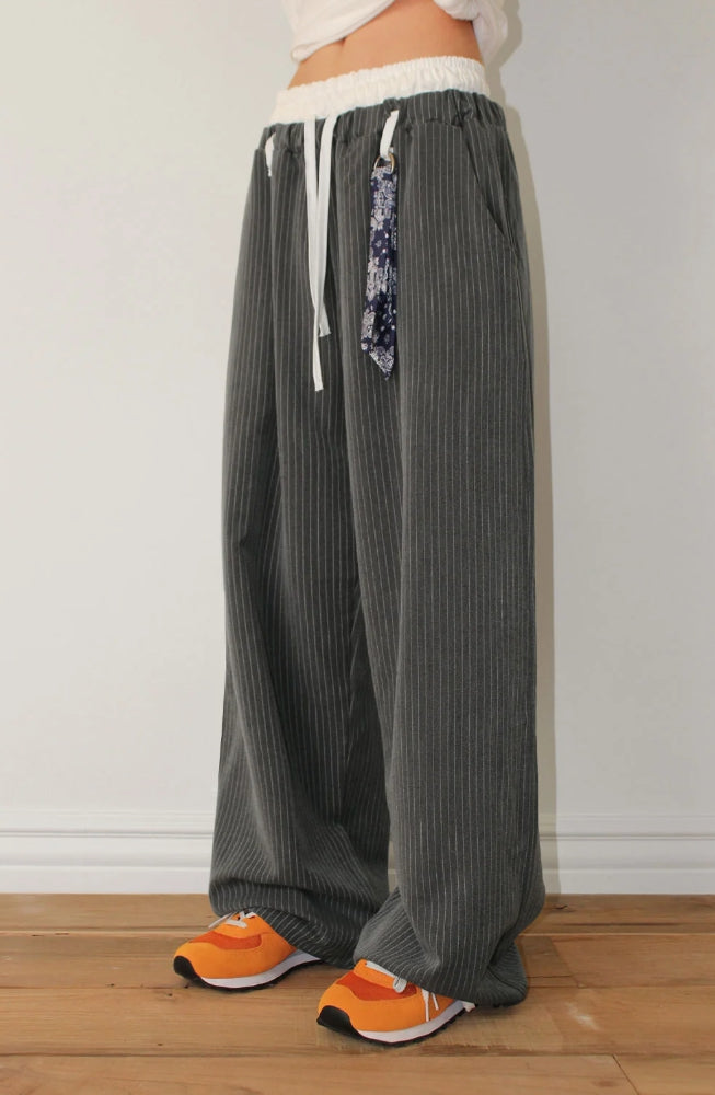 DOUBLE WAIST STRIPE SLACKS