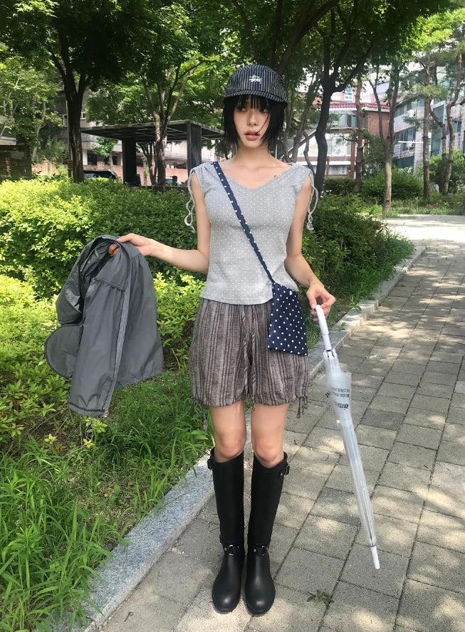 リネンストライプショートパンツ