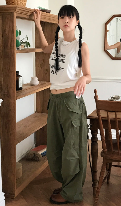 −M (ウエスト67 ヒップ118 股上33.5 股下70.5 もも周り84 裾周り59 総丈104)