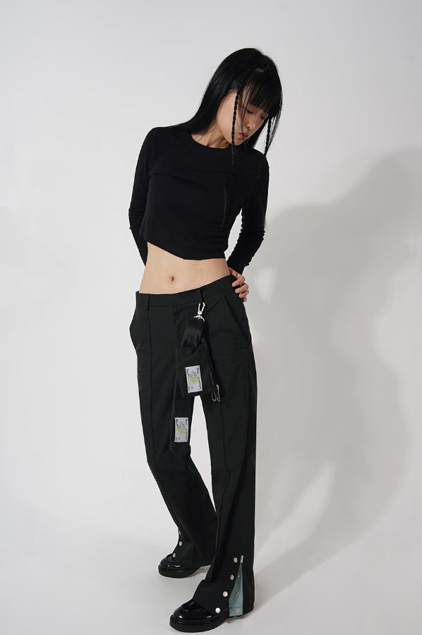 −M (ウエスト77 ヒップ100 股上26.5 股下78 もも周り59 裾周り48 総丈104.5)