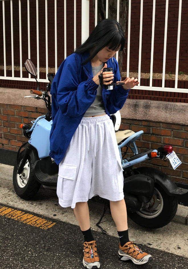 −ONE SIZE (ウエスト(ゴム)62-93 ヒップ102 股上38.5 股下20.5 もも周り79 裾周り74 総丈59)