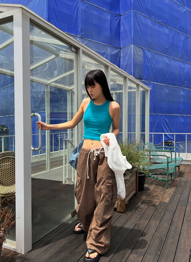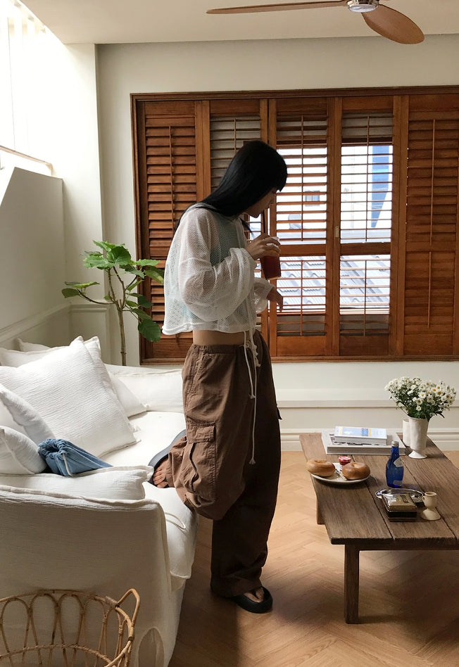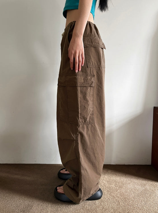 −ONE SIZE (ウエスト(紐調節)94 ヒップ124 股上35.5 股下64.5 もも周り82 裾周り57 総丈100)