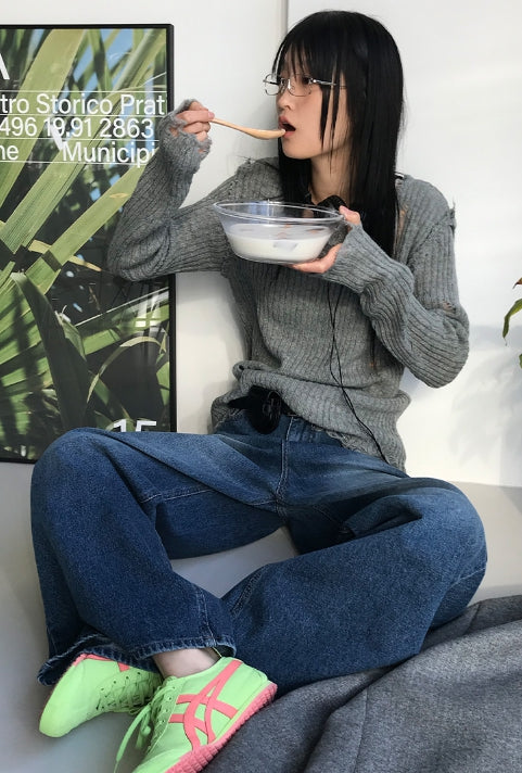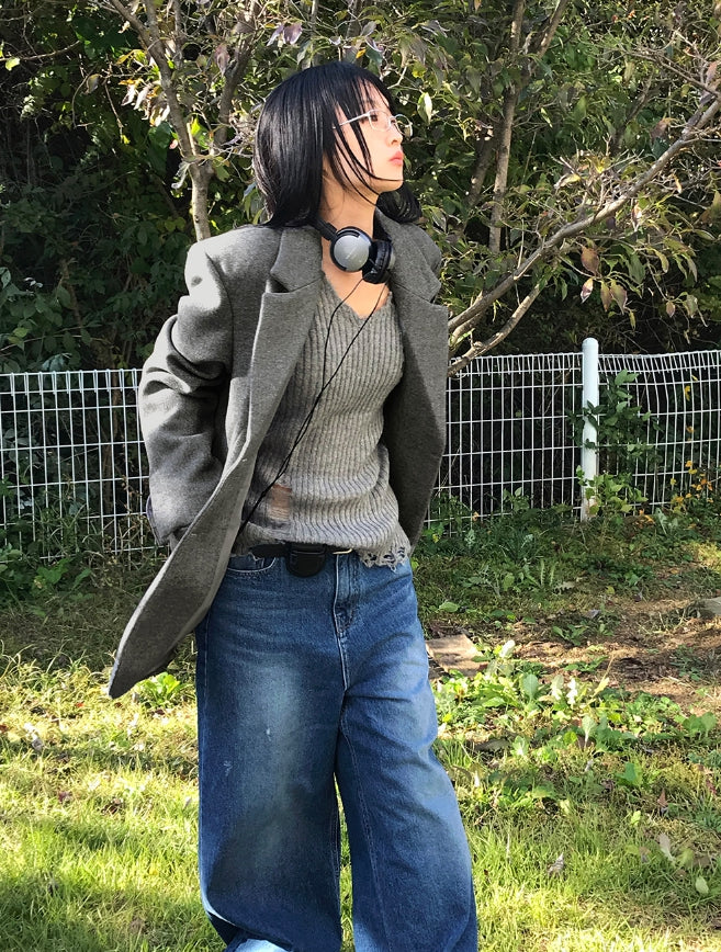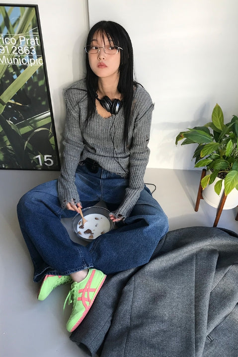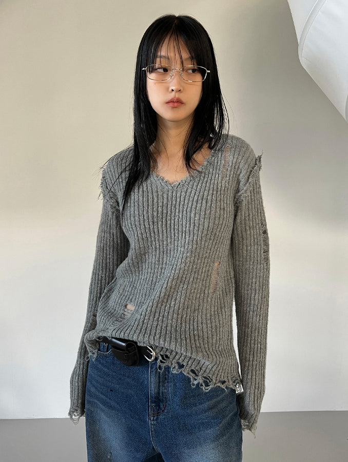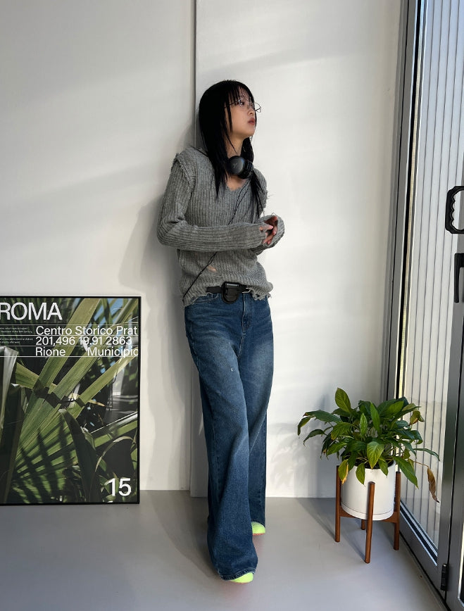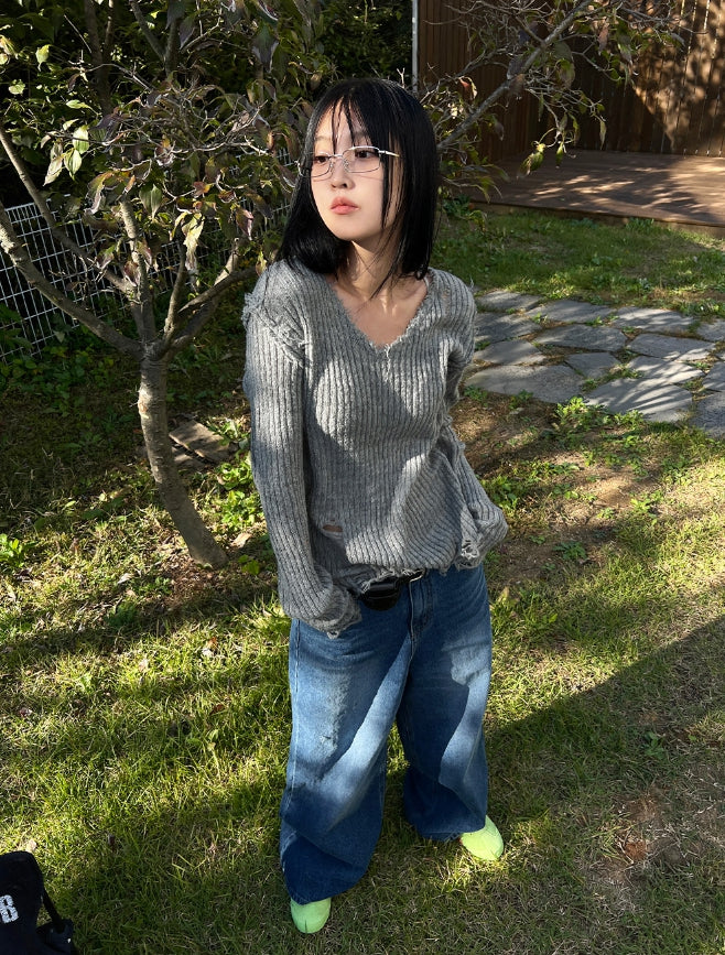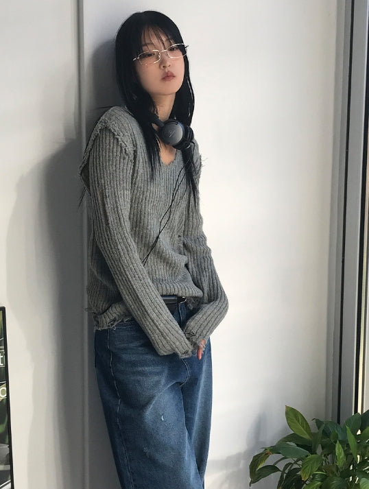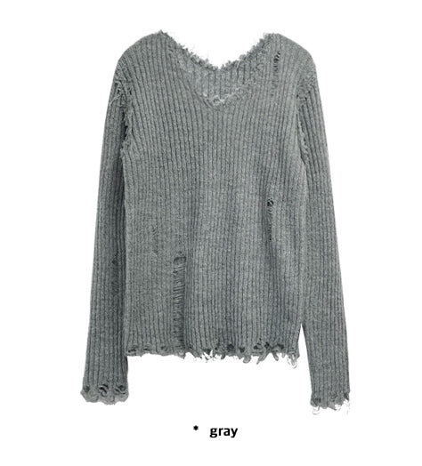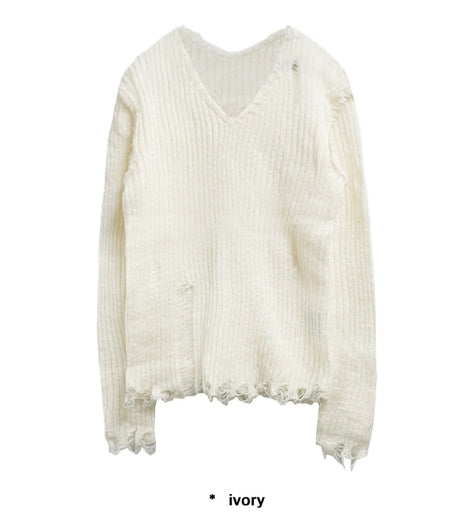 ヴィンテージダメージVネックニット