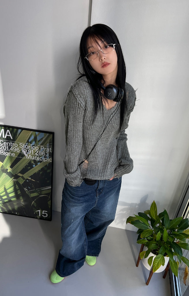 VINTAGE DAMAGE V-NECK KNIT