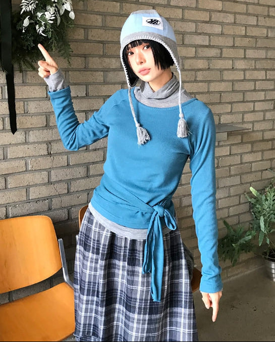 ボートネックストラップ長袖Tシャツ