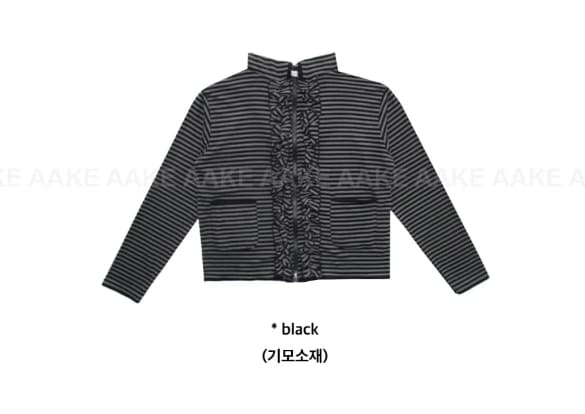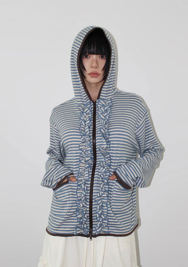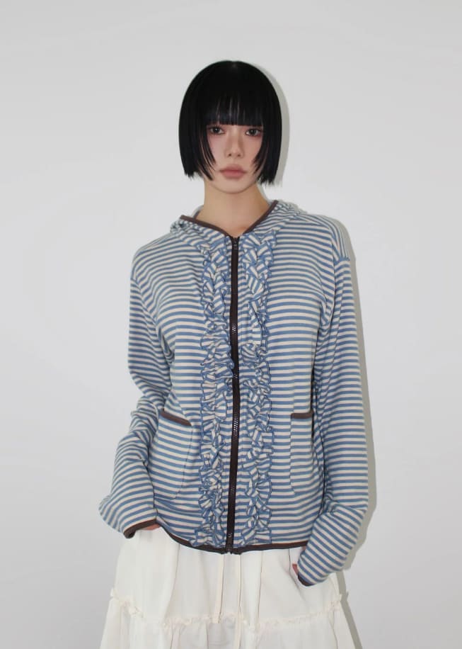 (Brushed) FRILL STRIPE HOOD ZIP-UP