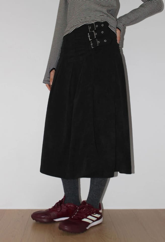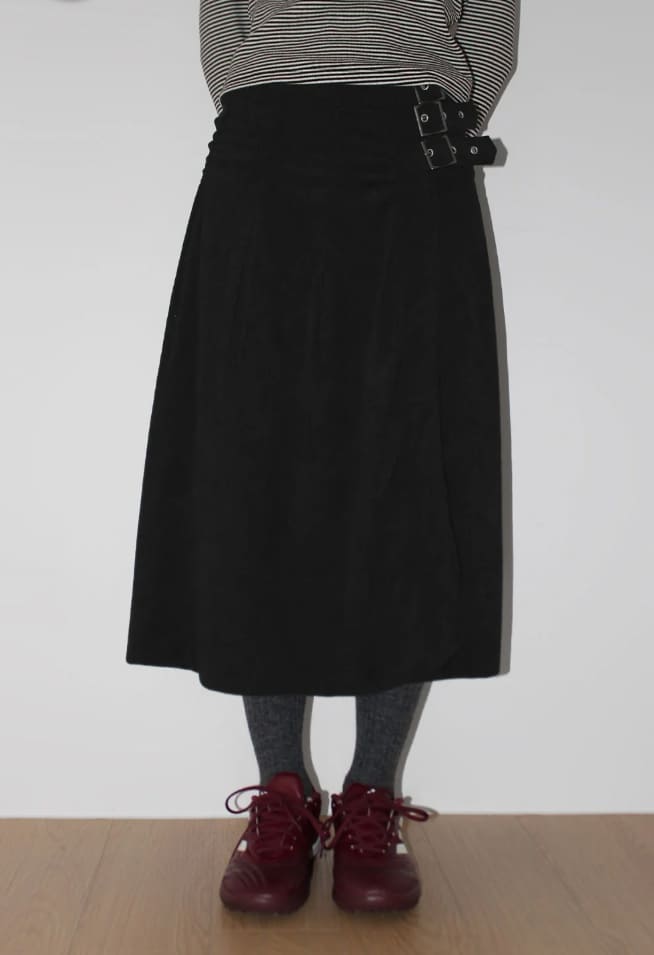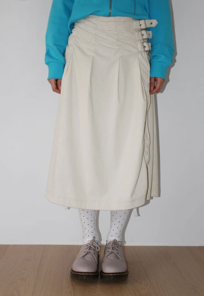 CORDUROY BUCKLE WRAP SKIRT