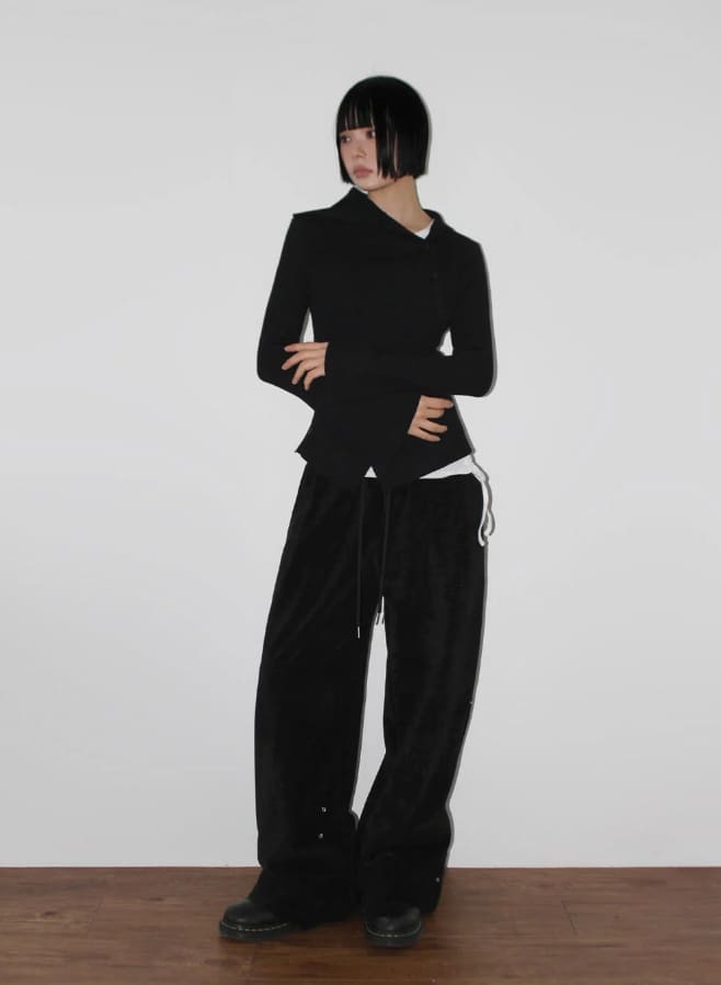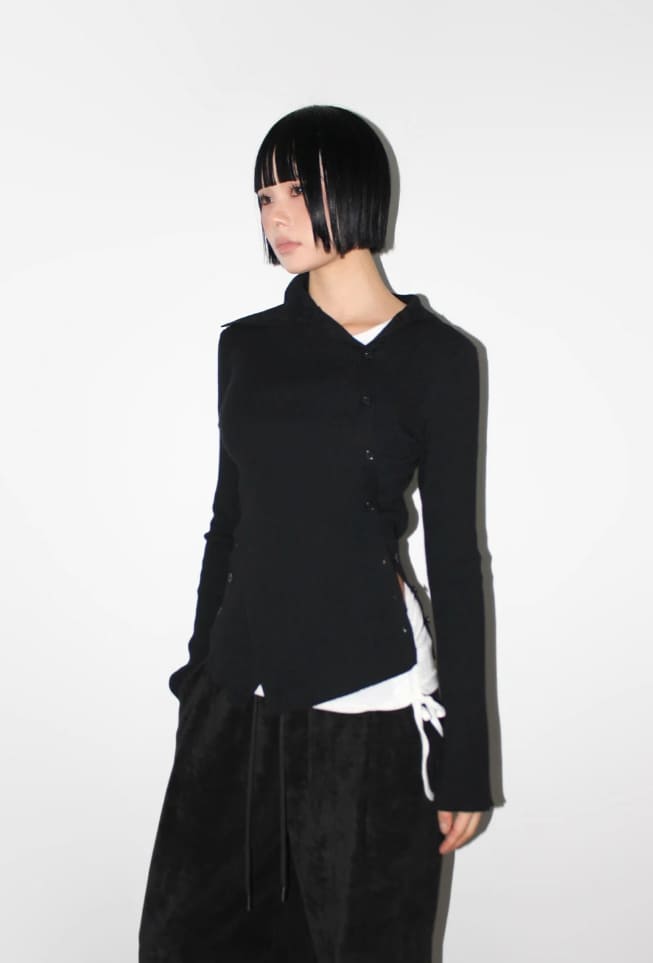 DIAGONAL BUTTON TURTLENECK KNIT