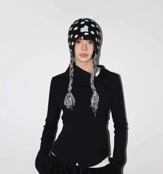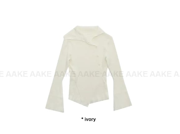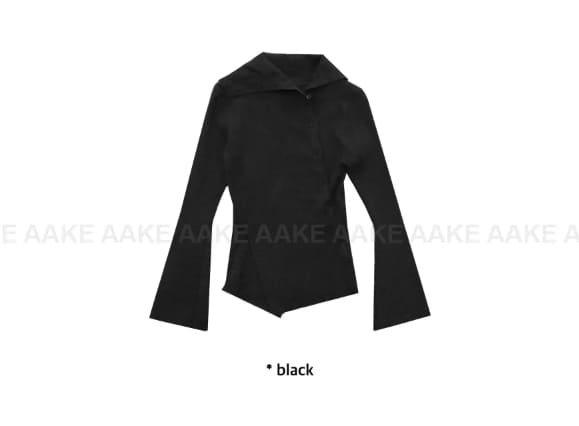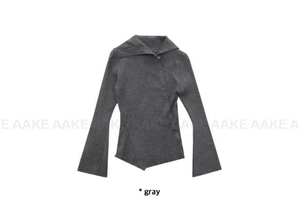 斜めボタンタートルネックニット