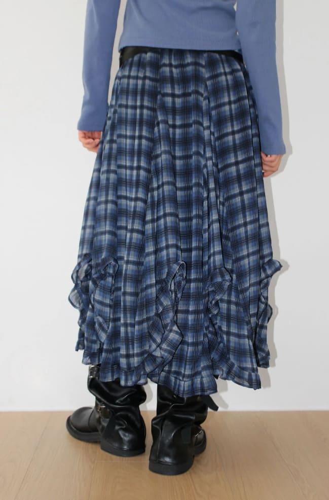 FRILL WAVE CHECK SKIRT