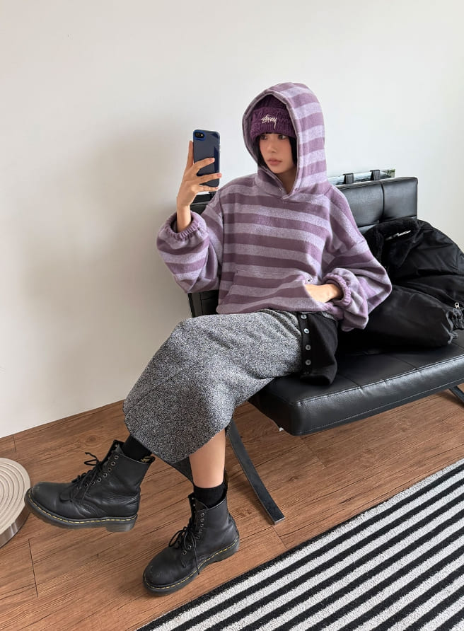 (Lining Brushed) BOCASHI BUTTON KNIT SKIRT