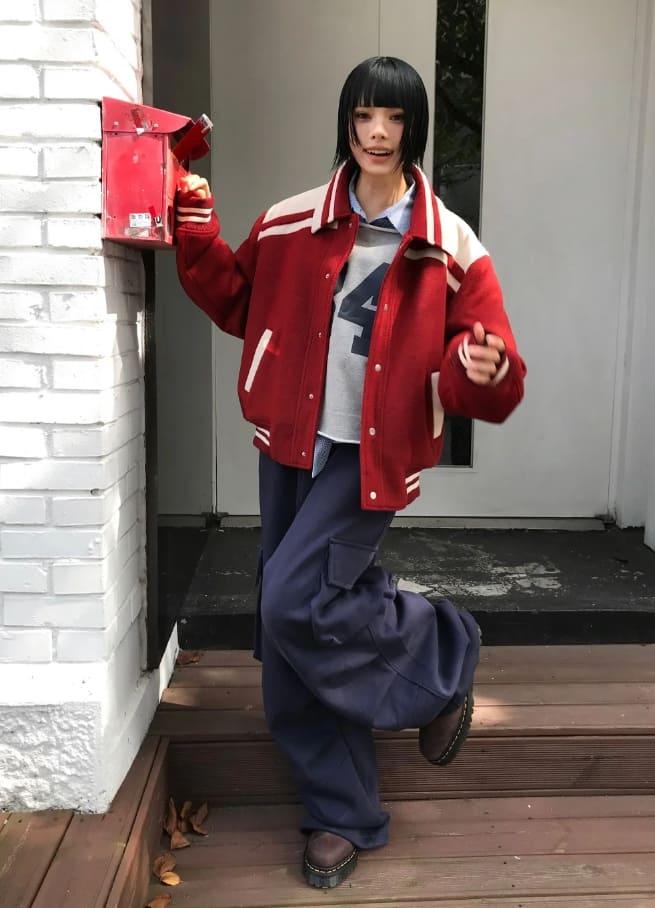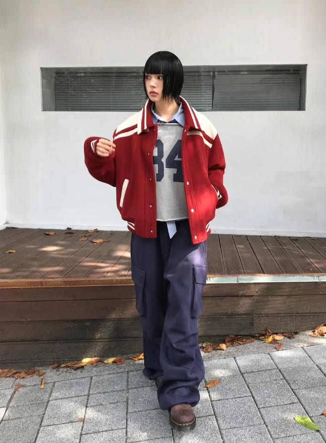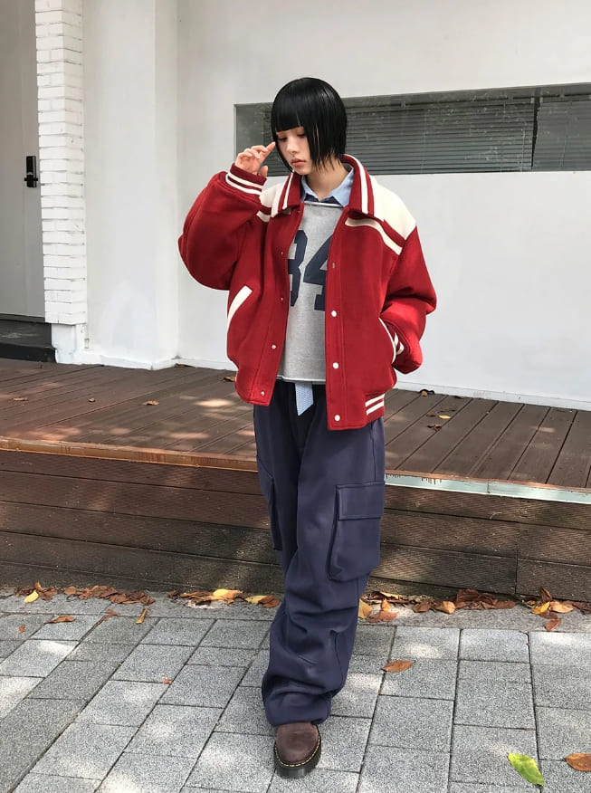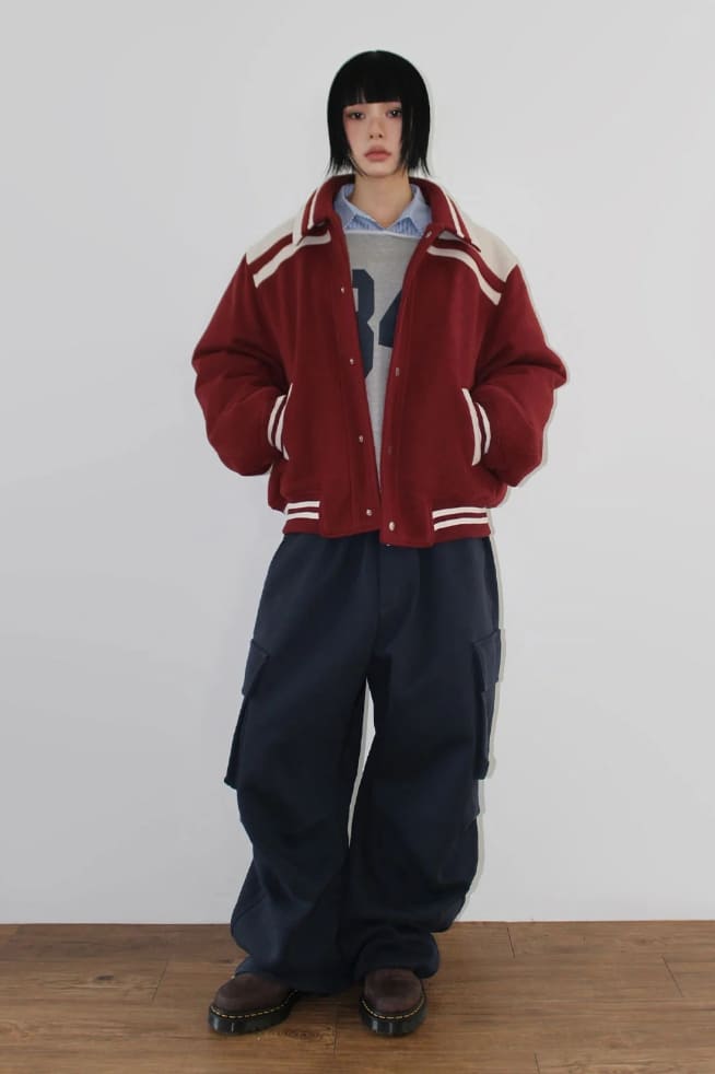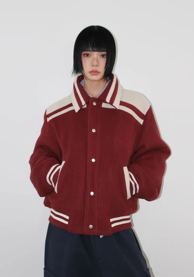 (Lining quilting) WINTER BLOCK VARSITY JUMPER