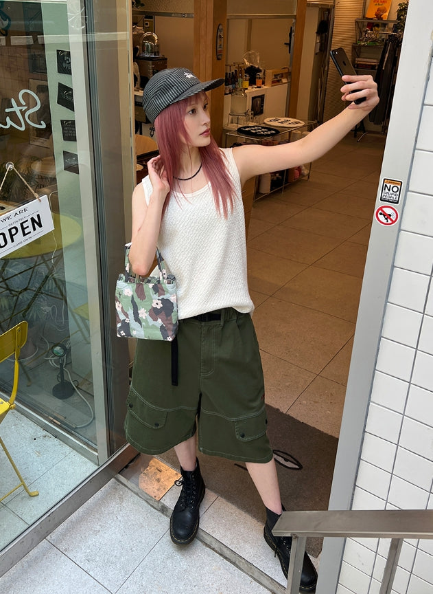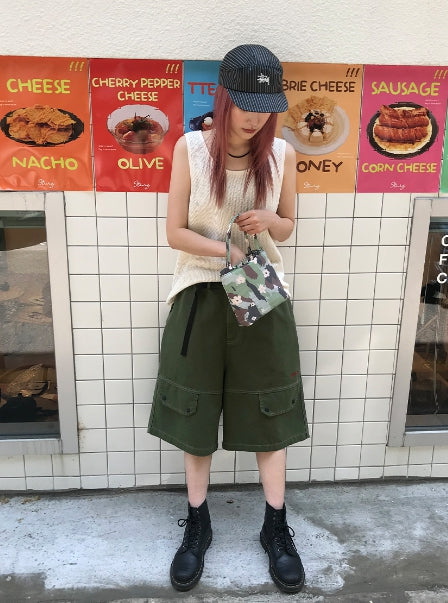 -ONE SIZE (ウエスト(ゴム)72-100 ヒップ- 股上40 股下22 もも周り80 裾周り76 総丈62)