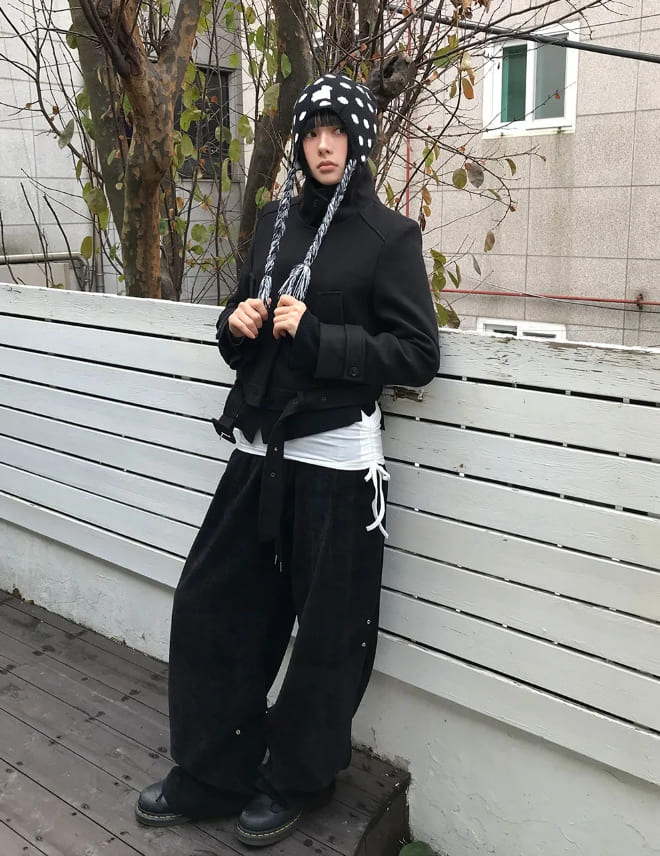 ベルベットスナップワイドパンツ