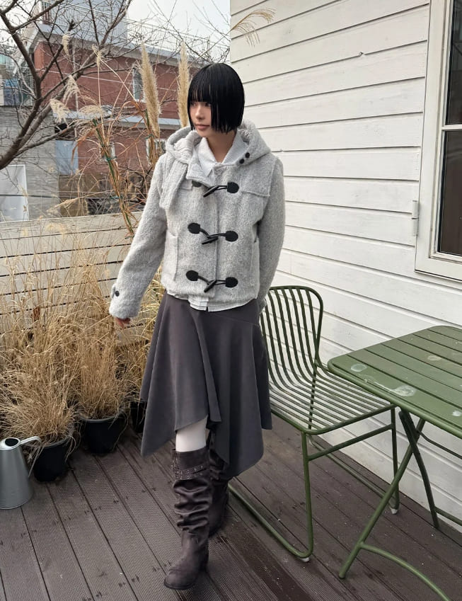 (WOOL) BOUCLE DUFFLE SHORT COAT