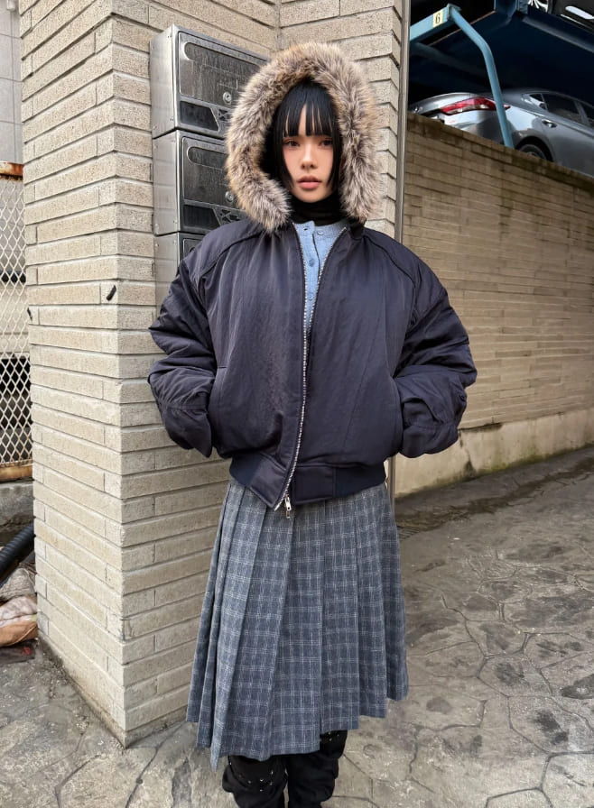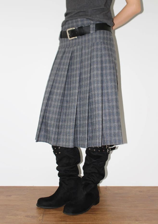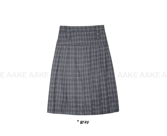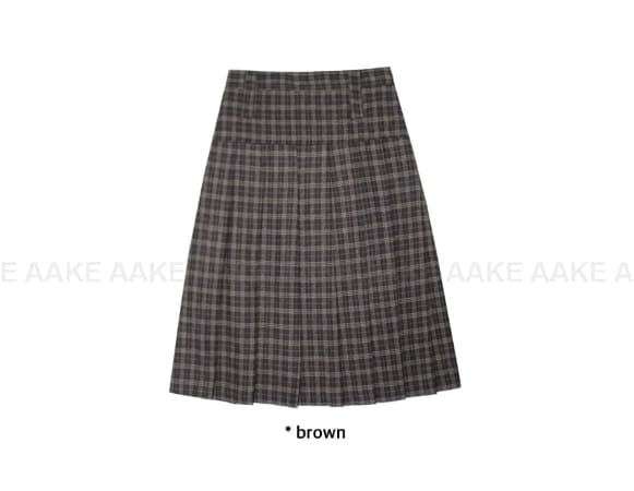 (WOOL) CHECK PLEATS MIDI SKIRT
