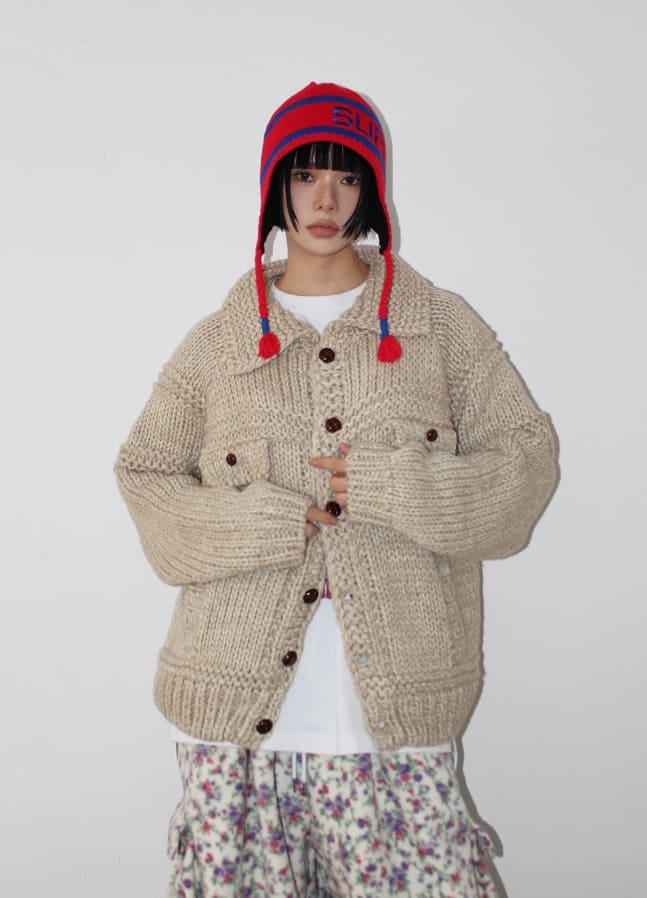 (WOOL) HEAVY CRAFT KNIT CARDIGAN