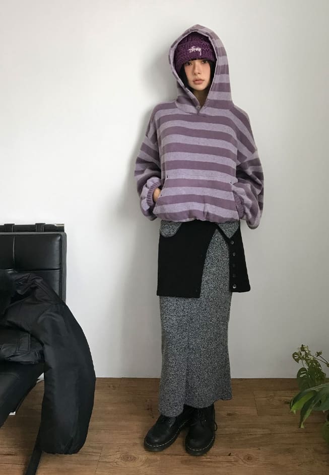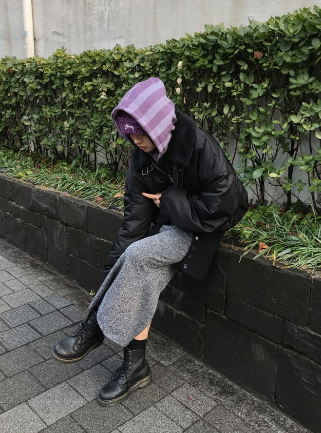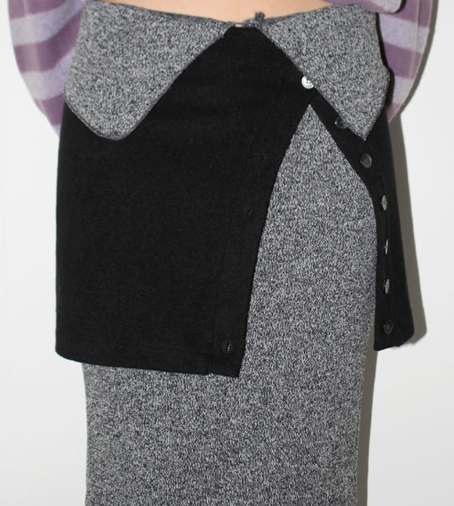 (WOOL) LAYERED BUTTON MINI SKIRT