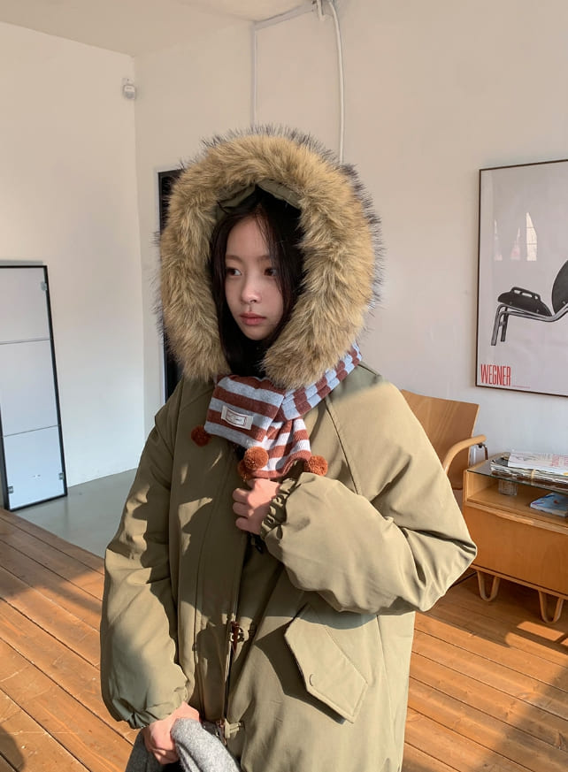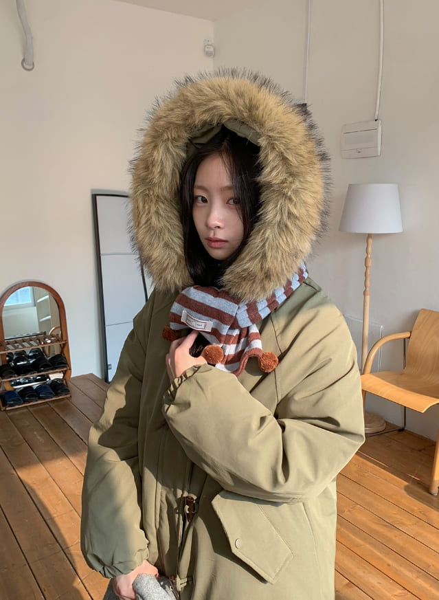 [BAONHAUS] Temdi Stripe Pom-Pom Muffler