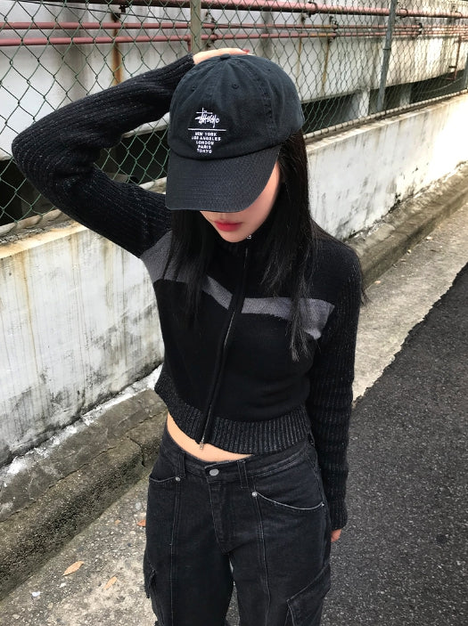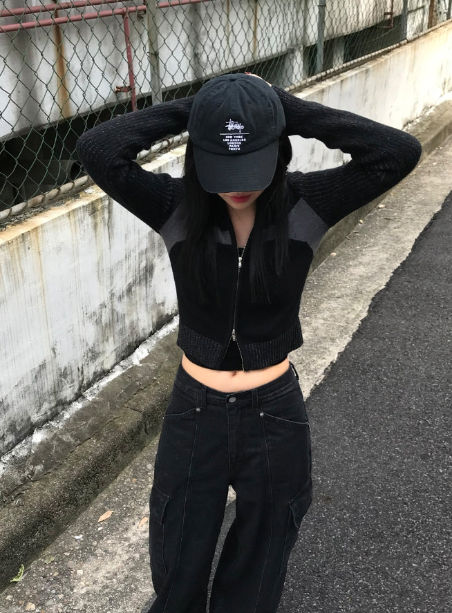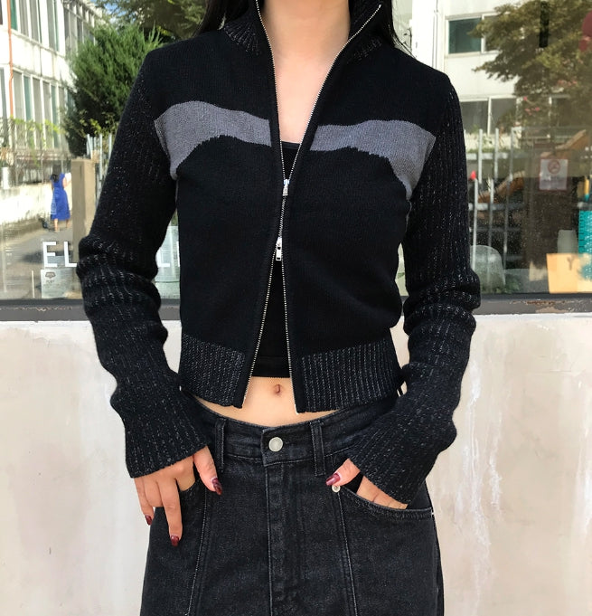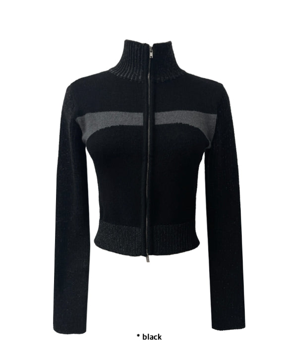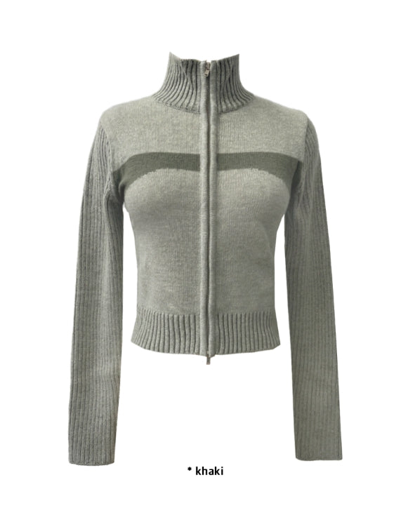 2WAY BLOCK KNIT ZIP-UP
