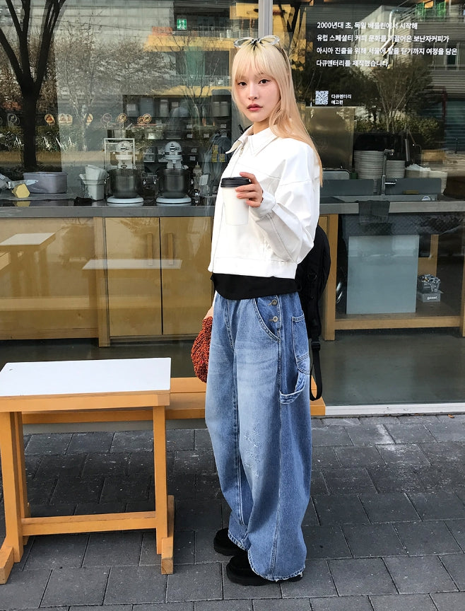 3 BUTTON CARPENTER WIDE DENIM