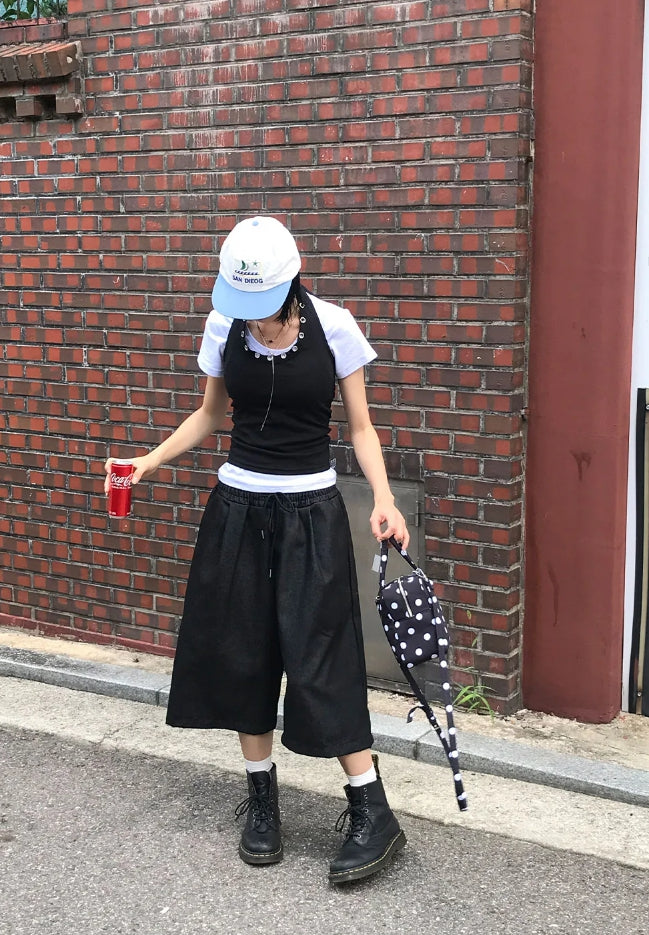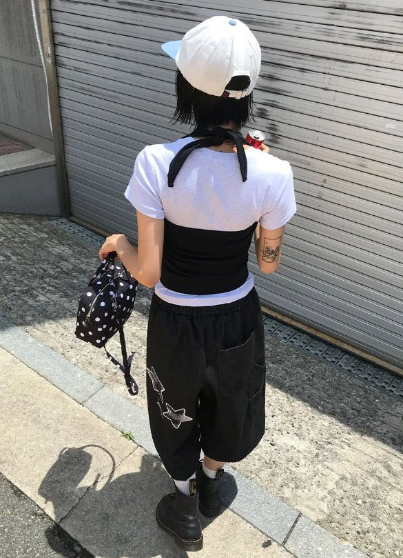 -ONE SIZE (ウエスト(ゴム)82 ヒップ130 股上36 股下31 もも周り76 裾周り68 総丈67)