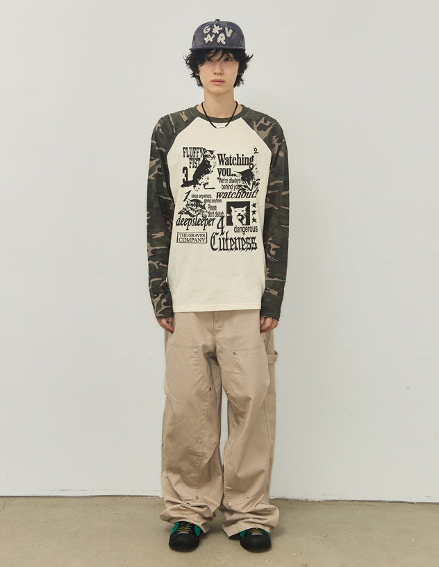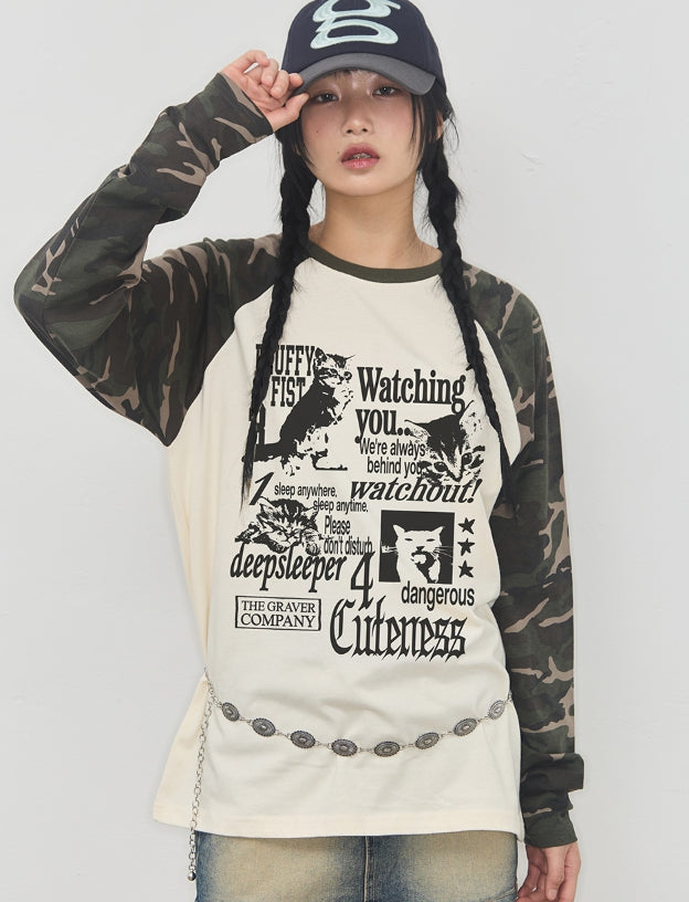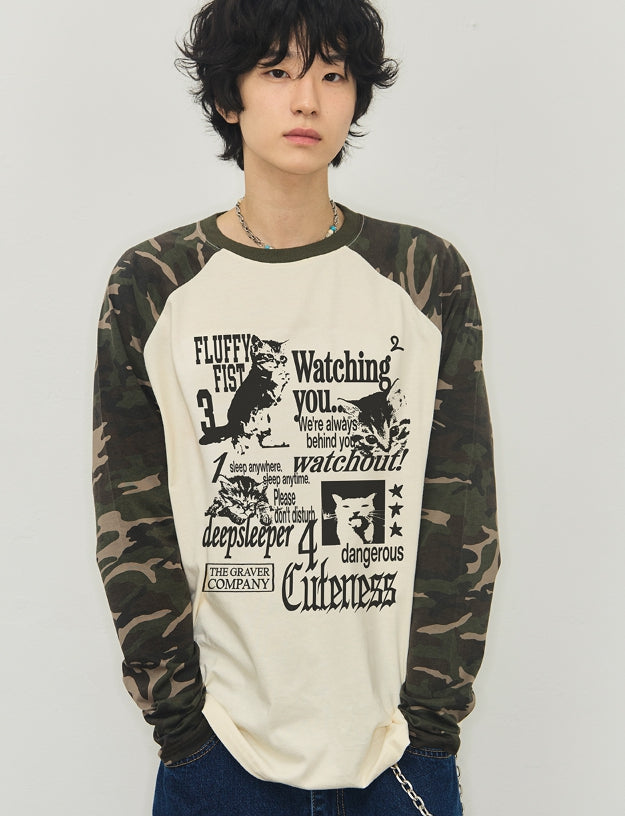 4 CATS Camo Raglan Long Sleeve T-Shirt