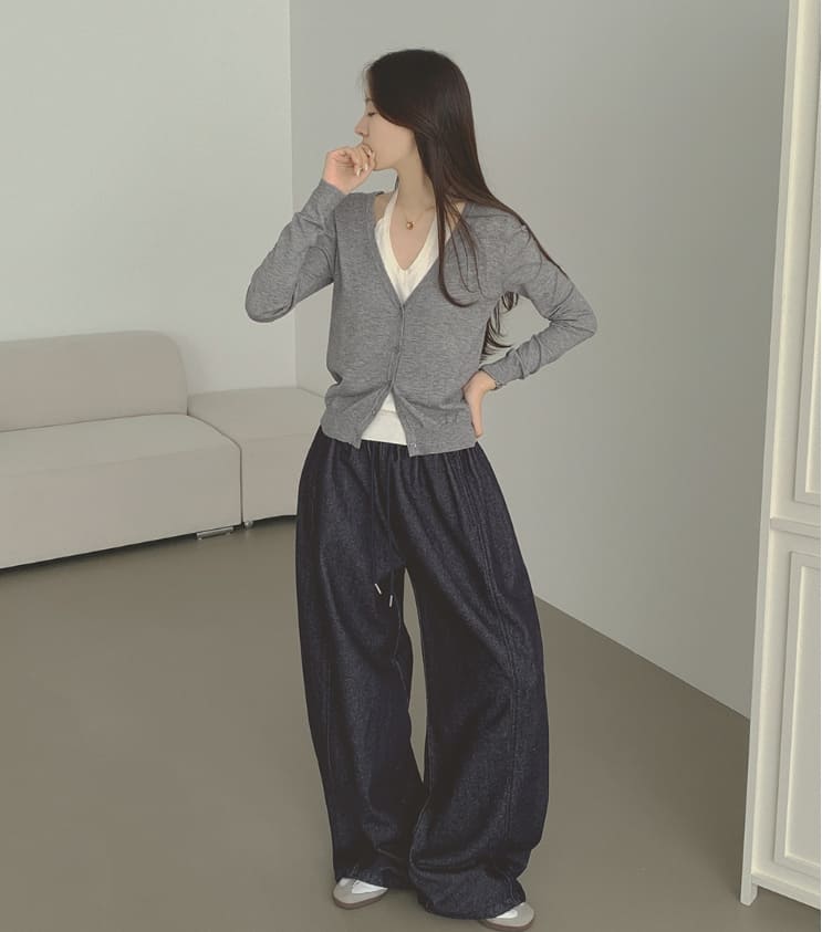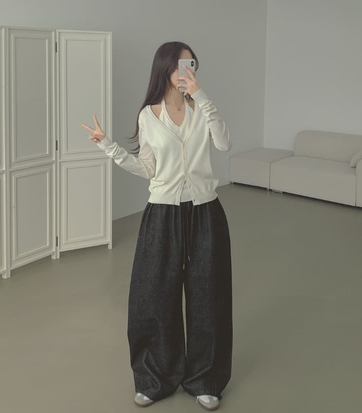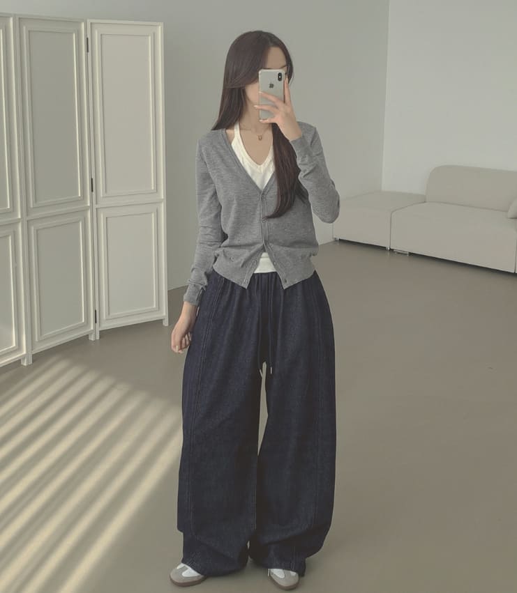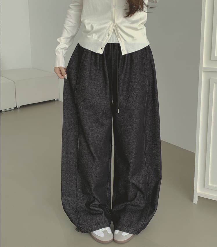 4-season Non-fade Raw Balloon Wide Jogger Banding Pants