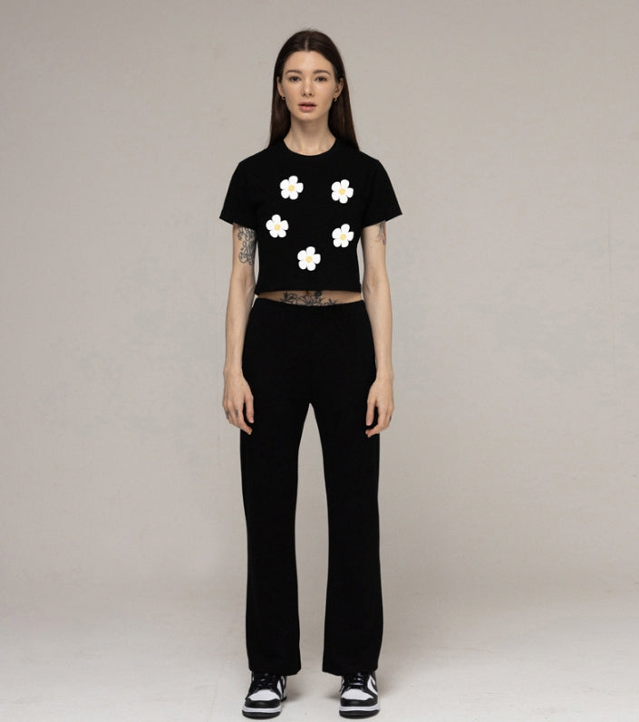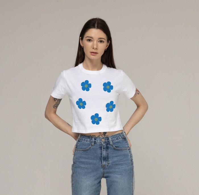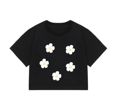 5 Flower Drawing Smile Crop Short Sleeve Tee