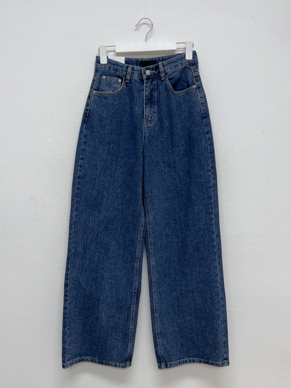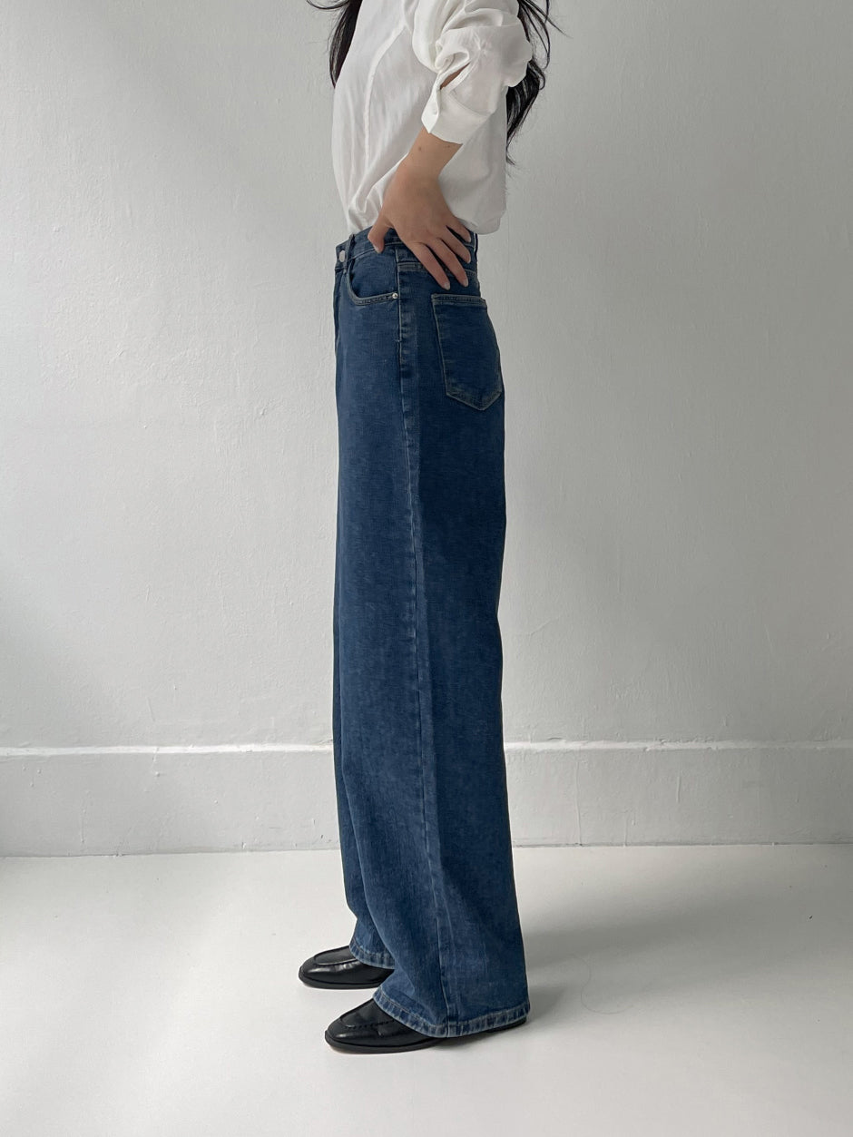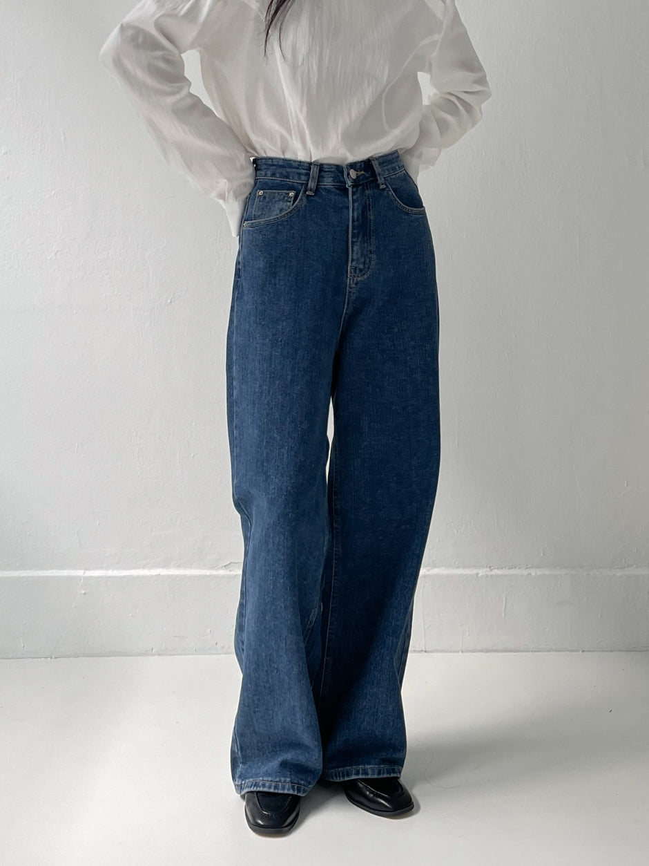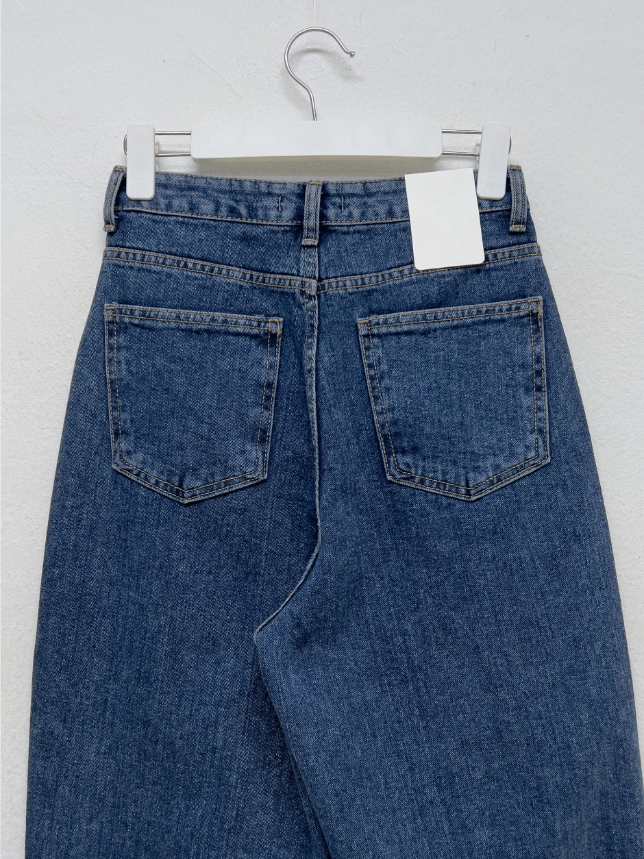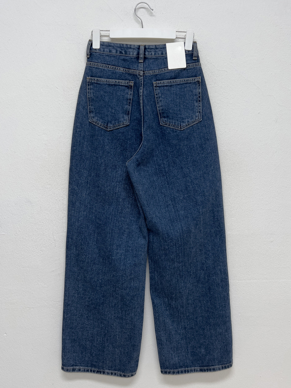 519ディープブルーハイウエストワイドデニム