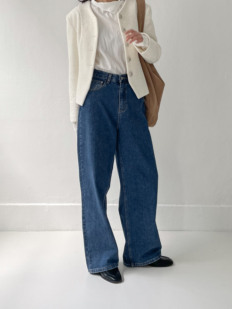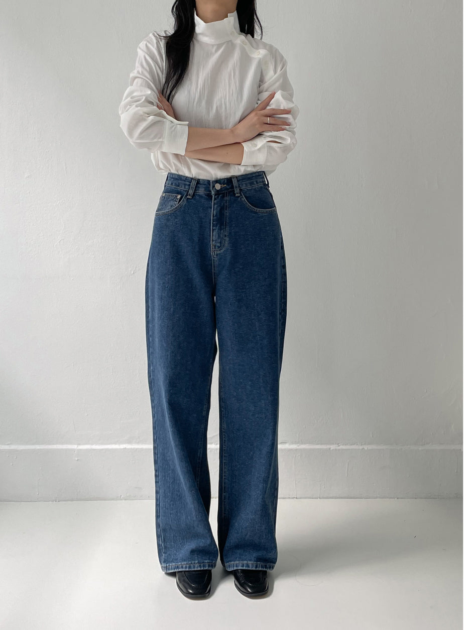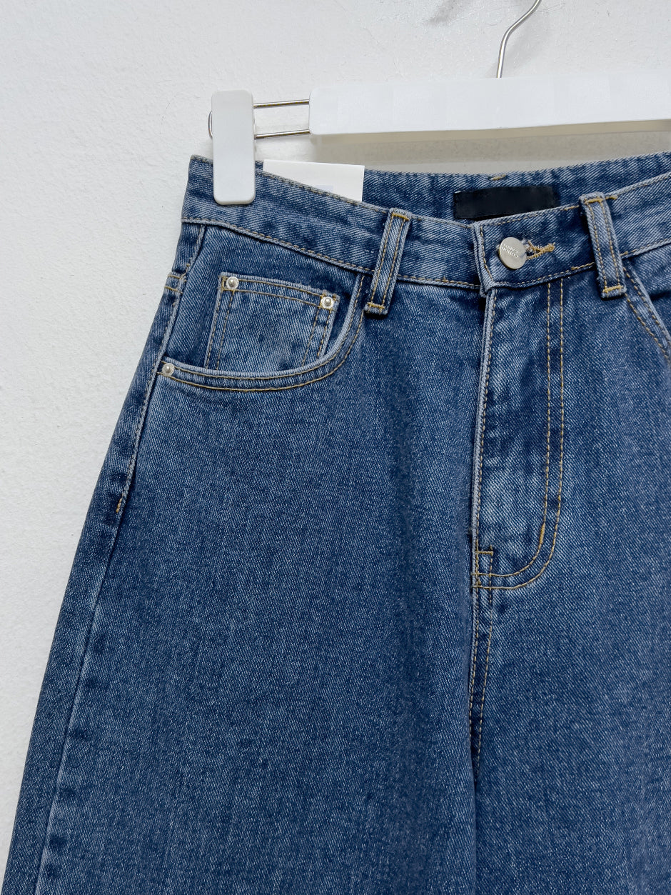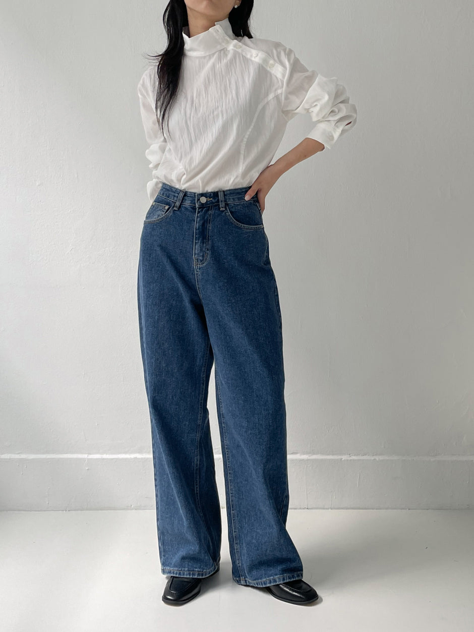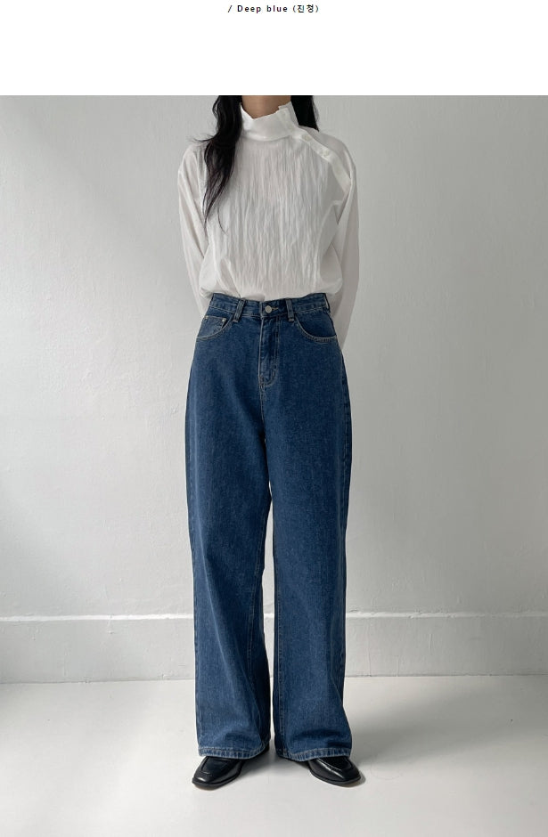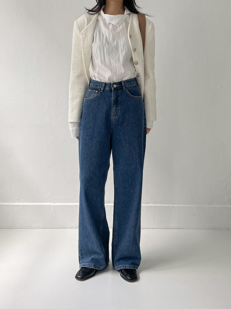 519ディープブルーハイウエストワイドデニム