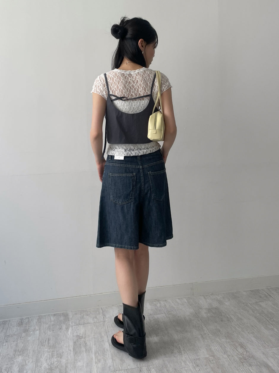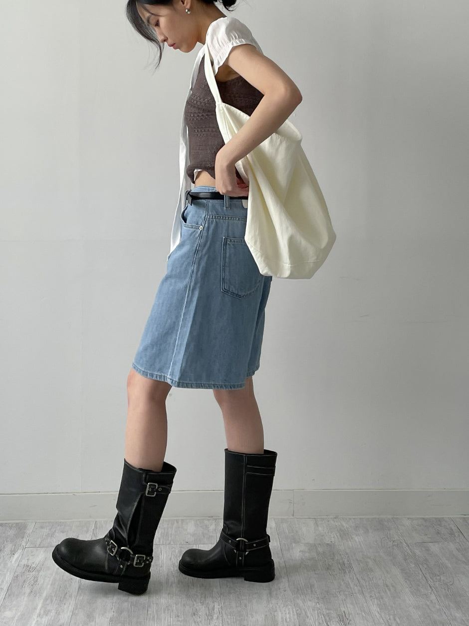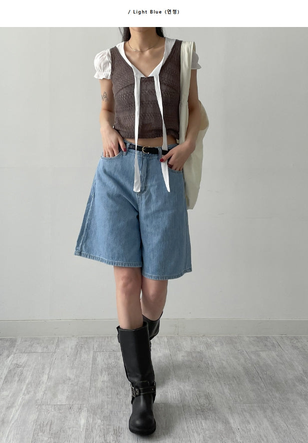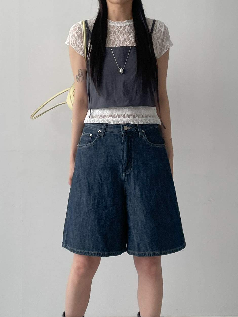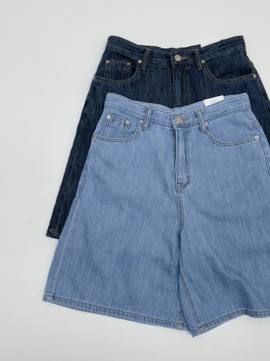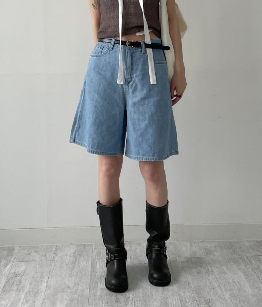 616 Wide Denim Half Pants