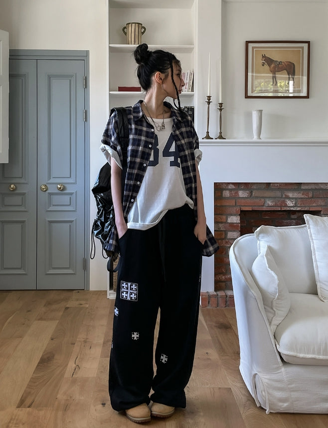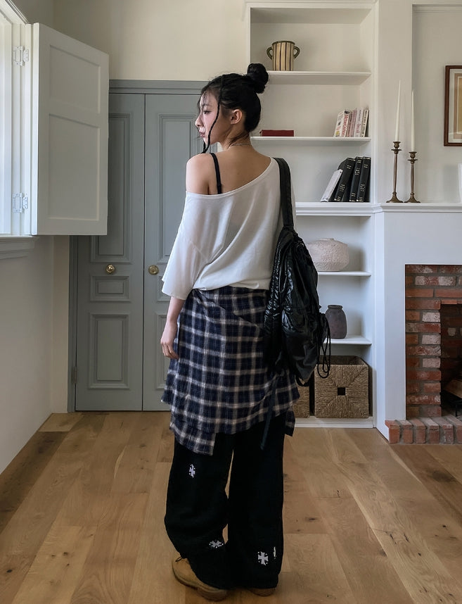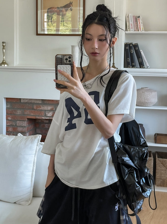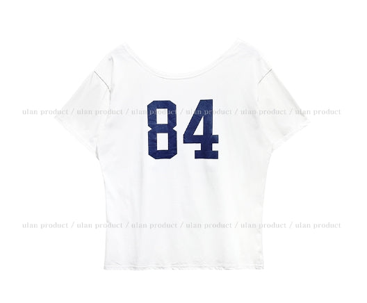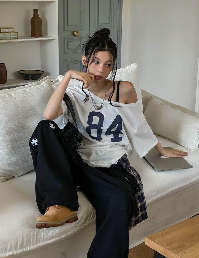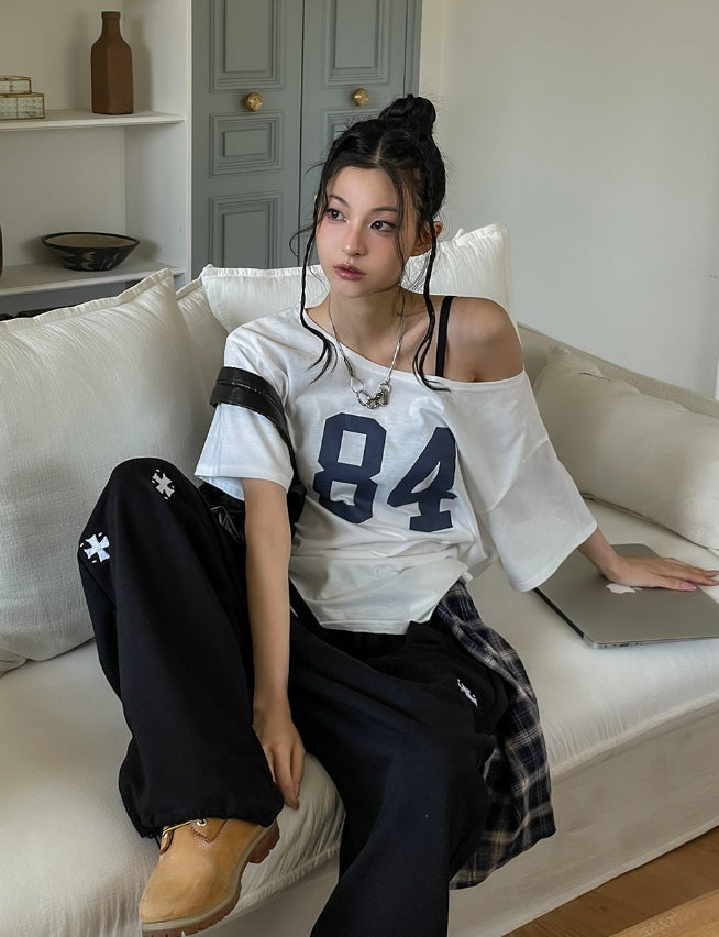 84 Numbering Off-Shoulder Loose Fit Short Sleeve